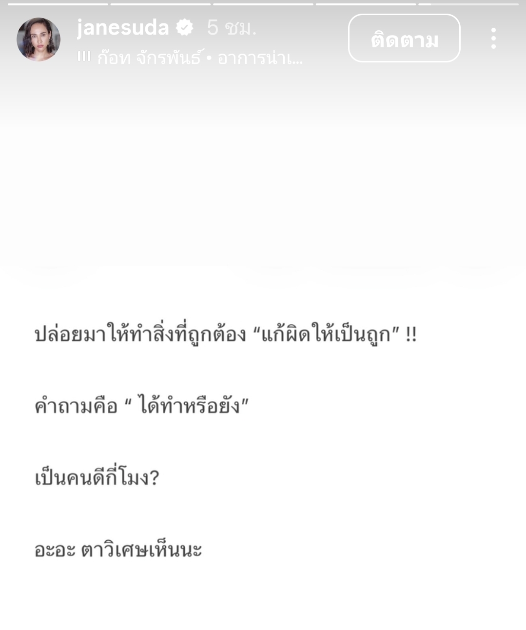 ว๊ายยย! อ่านแล้วถึงกับต้องเอามือทาบอกค่ะแม่ เพราะแต่ละประโยคมันช่างบาดลึกถึงทรวง โดยเฉพาะประโยคที่ว่า “เป็นคนดีกี่โมง?” ทำเอาชาวเน็ตสายเผือกหูผึ่ง ตาโต เอียงคอสงสัยกันทั้งโซเชียลว่า งานนี้สาวเจนสุดาเธอกำลังส่งสัญญาณถึงใครหรือเปล่า? หรือจะมีดราม่าอะไรที่พวกเรายังไม่รู้?
