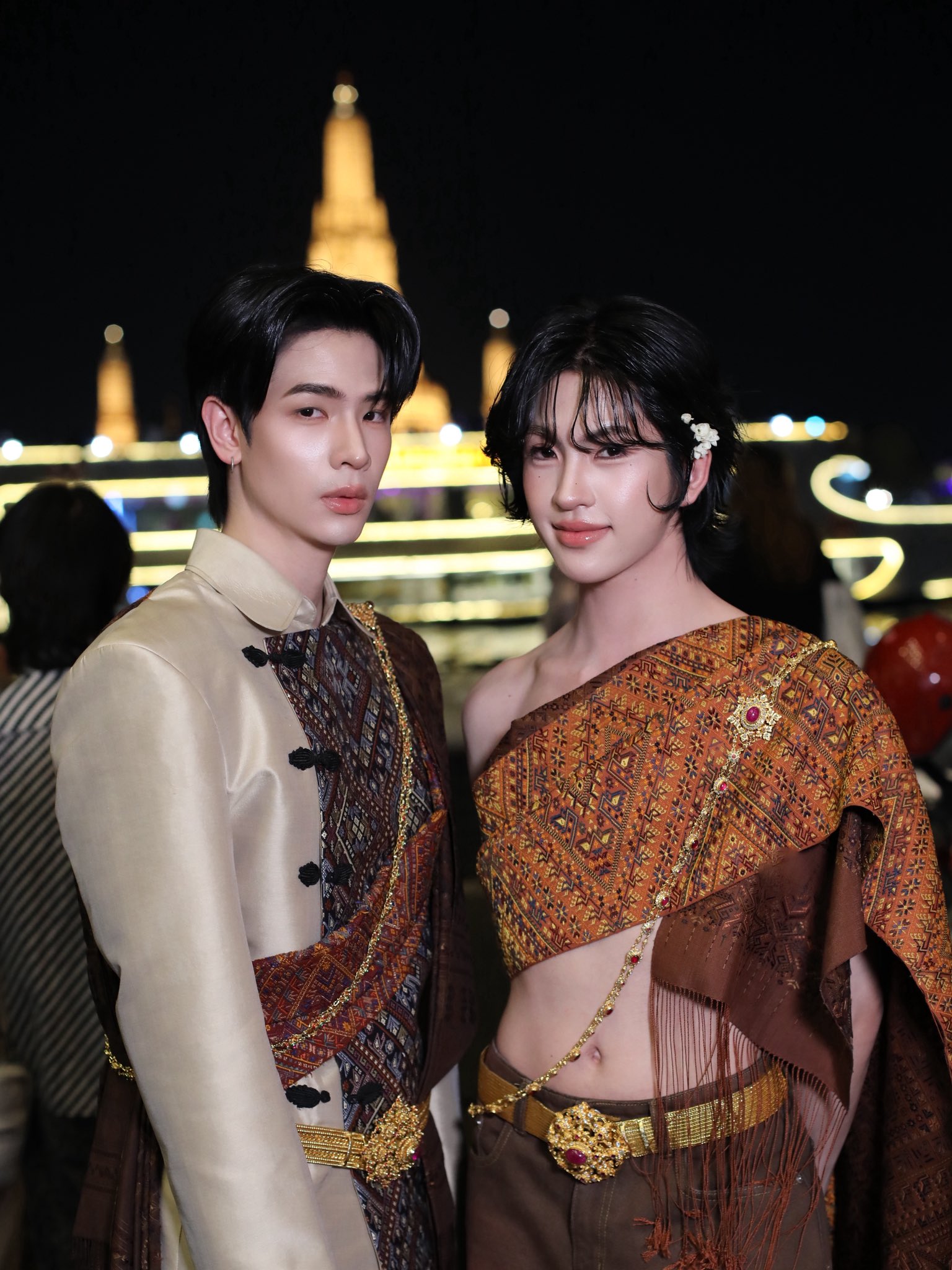 งานนี้พี่ใหญ่ใจดีอย่าง “คิม พงศธร” มาในลุคที่ทำเอาแฟนคลับถึงกับต้องร้องว้าว ด้วยการหยิบ สไบผ้าไทยสีน้ำตาลทอง ลวดลายวิจิตรบรรจง มาแมทชิ่งกับ กางเกงยีนส์ ได้อย่างลงตัว บอกเลยว่าสวยจึ้งสะกดสายตาแบบ “ตัวแม่” สุดๆ ส่วนด้าน “ลาเต้ ธรรรถชน” หรือ “เจ้าม๋าเด็ก” ของพี่คิม ก็ไม่น้อยหน้า มาในชุดไทยประยุกต์ที่เสริมลุคให้ดูหล่อเหลา สง่างาม แต่ยังคงความเท่แบบสมัยใหม่ไว้ได้อย่างลงตัว