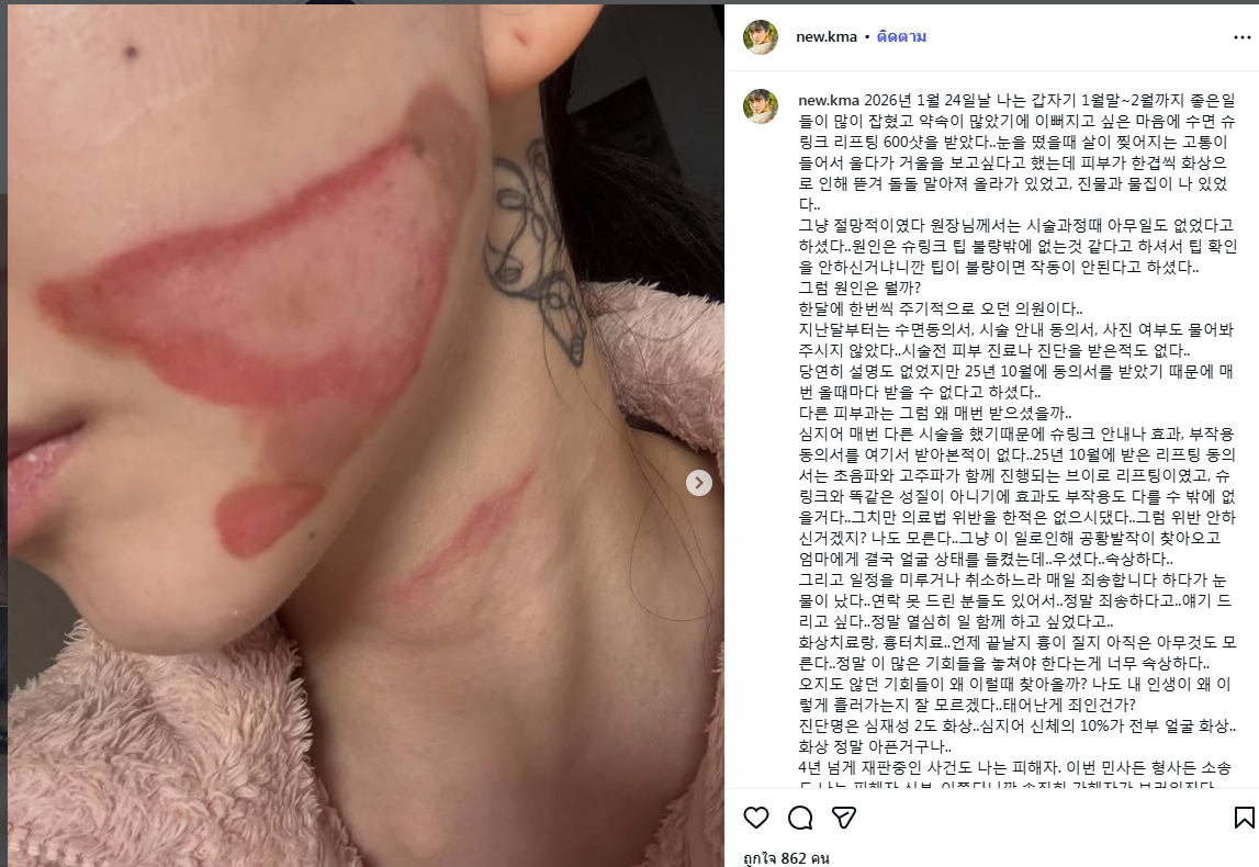 วงการบันเทิงต่างประเทศสุดตกใจ หลัง “ควอนมินอา” อดีตสมาชิกเกิร์ลกรุ๊ปวง AOA (Kwon Min-ah) ศิลปินประเทศเกาหลีใต้ ได้แชร์เรื่องราวหลังประสบอุบัติเหตุถูกไฟไหม้ระหว่างรับบริการทางผิวหนัง ซึ่งสร้างความตกใจและได้รับกำลังใจอย่างล้นหลามจากแฟนคลับ