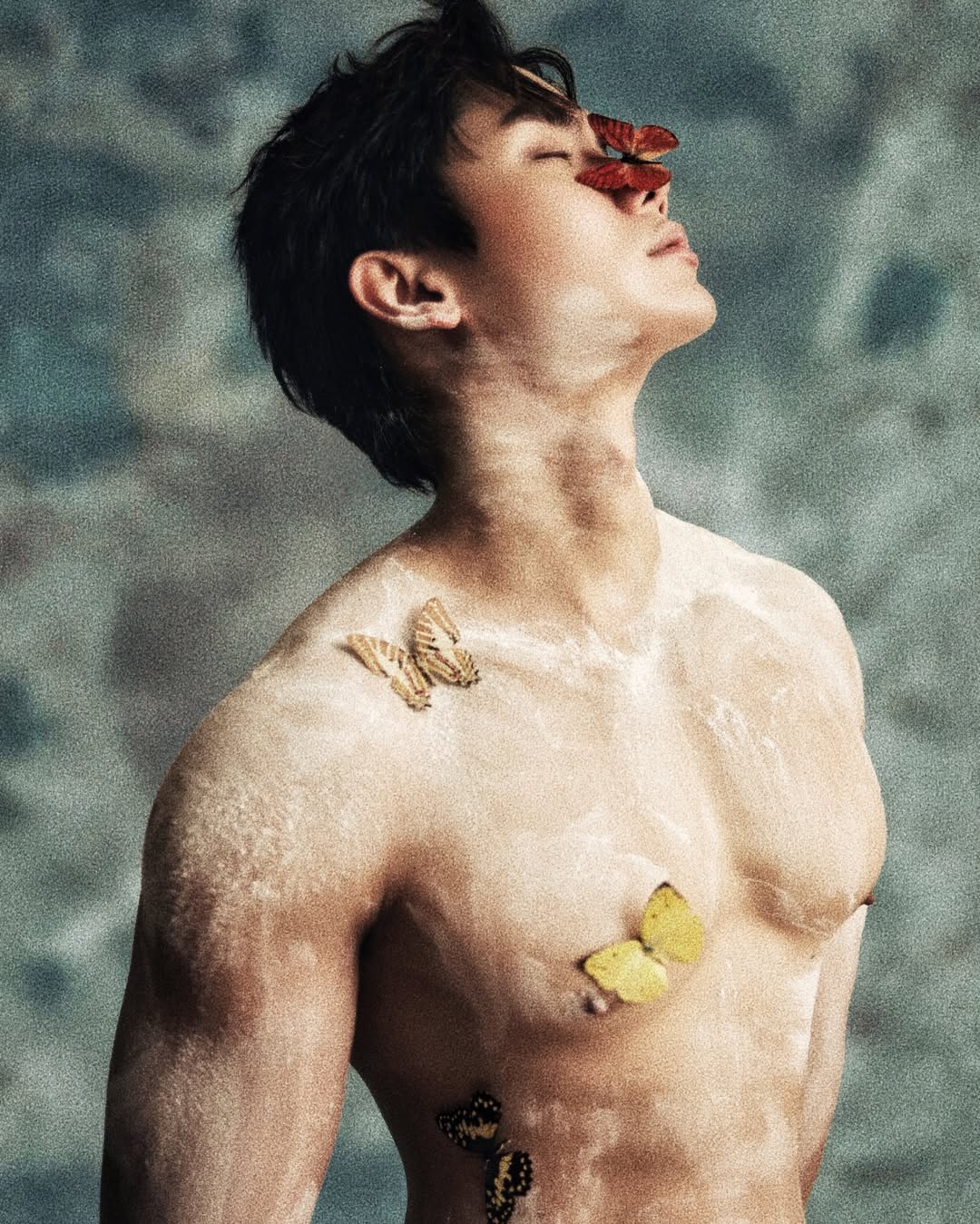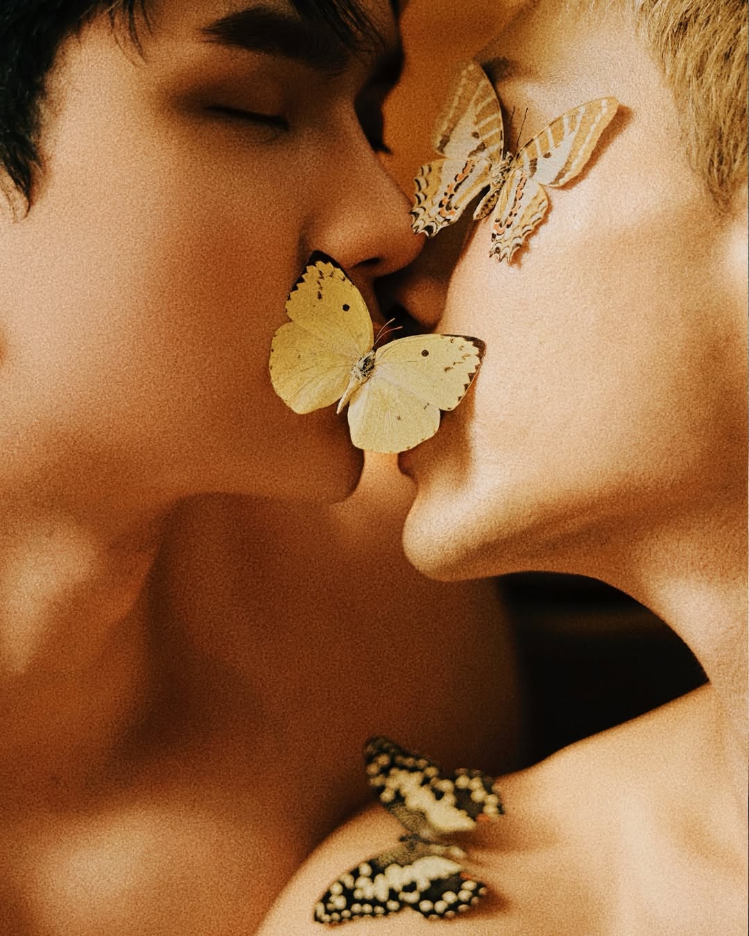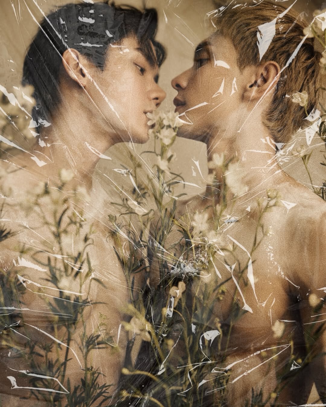 ทั้งคู่โชว์ผิวเนียนละเอียด พร้อมซิกแพคเป็นลอนสวย สาดแป้งสีขาวเบาๆ เพิ่มความอาร์ต แต่ที่ทำให้แฟนคลับหัวใจจะวาย คือความใกล้ชิดชนิดที่ลมหายใจรดต้นคอ!