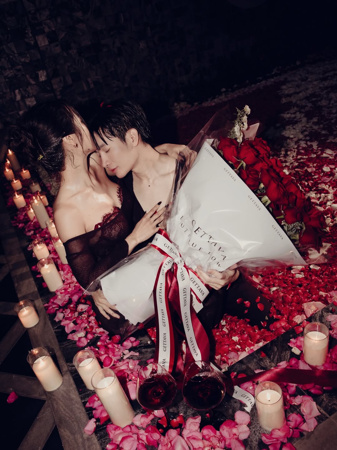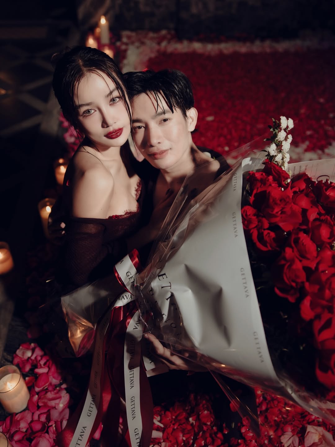 โดยภาพเซตสุดเอ็กซ์คลูซีฟนี้ถูกจัดเต็มในบรรยากาศสุดหรูหรา รายล้อมไปด้วยเชิงเทียนนับร้อยเล่มที่ส่องแสงระยิบระยับเคียงข้างพรมกลีบกุหลาบสีแดงสดที่ถูกจัดวางเป็นข้อความแทนใจอย่าง “FOREVER YOURS” พร้อมรูปหัวใจขนาดใหญ่สะดุดตา สื่อถึงความรักที่มั่นคงและยาวนานตลอดหนึ่งทศวรรษ กระแตปรากฏตัวในชุดสีขาวเรียบหรูดูแพงสะท้อนถึงความบริสุทธิ์ของความรัก ก่อนจะสลับอารมณ์เข้าสู่โหมดเซ็กซี่เร่าร้อนในชุดโทนสีเข้มชวนหลงใหล ทั้งช็อตสบตาหวานซึ้ง การจิบไวน์ฉลองชัยชนะของความรัก และโมเมนต์สุดใกล้ชิดในสระน้ำที่เต็มไปด้วยกลีบดอกไม้กระจายฟุ้ง เป็นการประกาศศักดาความรักที่สมบูรณ์แบบและสยบทุกกระแสดราม่าที่เคยเกิดขึ้นได้อย่างราบคาบ