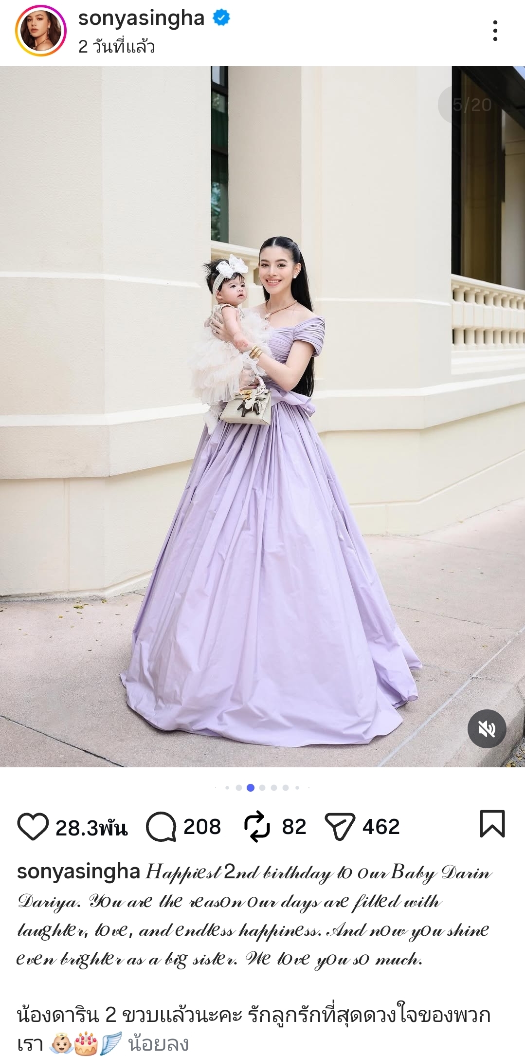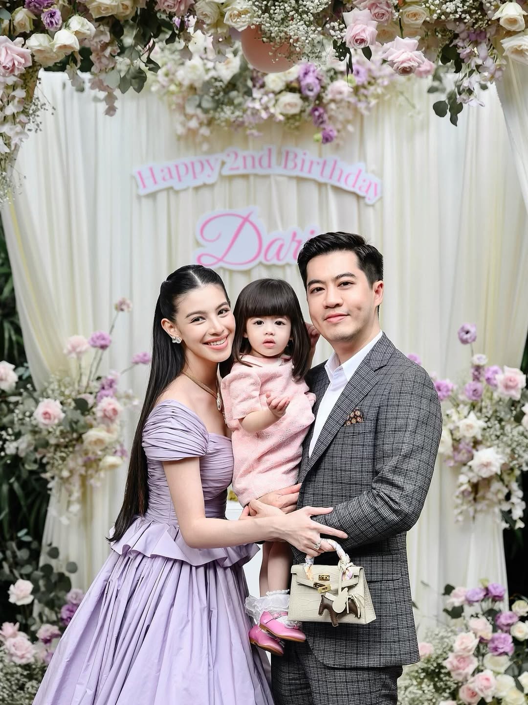 งานนี้คุณแม่แคทมาในชุดราตรีสีม่วงพาสเทลสุดละมุน ยืนเคียงข้างคุณพ่อและลูกสาว เห็นแล้วบอกคำเดียวว่า “กิ่งทองใบหยกที่แท้ทรู” ส่วนเจ้าของวันเกิดอย่างน้องดารินก็น่ารักตะมุตะมิในชุดสีชมพู ดูแล้วรู้เลยว่าโตขึ้นมาต้องสวยได้แม่แน่นอน! แถมคุณแม่แคทยังลงแคปชั่นสุดซึ้งว่าน้องดารินคือความสุขของครอบครัว และตอนนี้กำลังขึ้นแท่นเป็น “พี่สาว” ที่แสนดีแล้วด้วยนะจ๊ะ