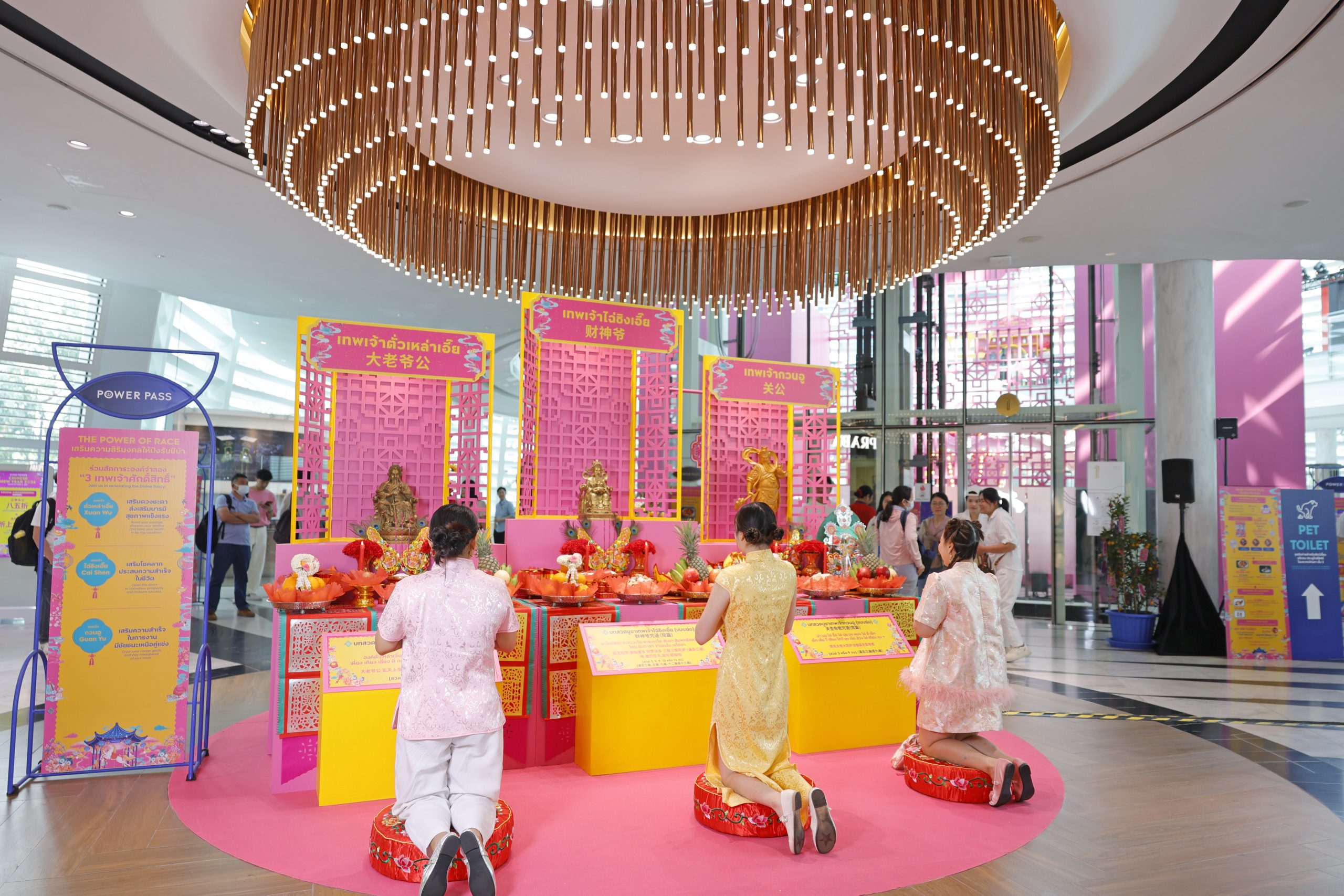 • มาไหว้ เสริมเฮงเริ่มต้นปีมหามงคล THE POWER OF RACE ร่วมสักการะ 3 เทพเจ้าศักดิ์สิทธิ์จำลอง เทพตั่วเหล่าเอี๊ย ปกป้องคุ้มครองเสริมดวงชะตาส่งเสริมบารมี เสริมสุขภาพแข็งแรง ธุรกิจเจริญรุ่งเรือง, เทพเจ้าไฉ่สิ่งเอี๊ย ส่งเสริมเรื่องโชคลาภ ความร่ำรวย ความอุดมสมบูรณ์ และประสบความสำเร็จในชีวิต และ เทพเจ้ากวนอู ปางง้าวมังกรเขียว เสริมความสงบร่มเย็น เสริมความสำเร็จด้านการงาน และมีชัยชนะเหนือคู่แข่งทั้งปวง