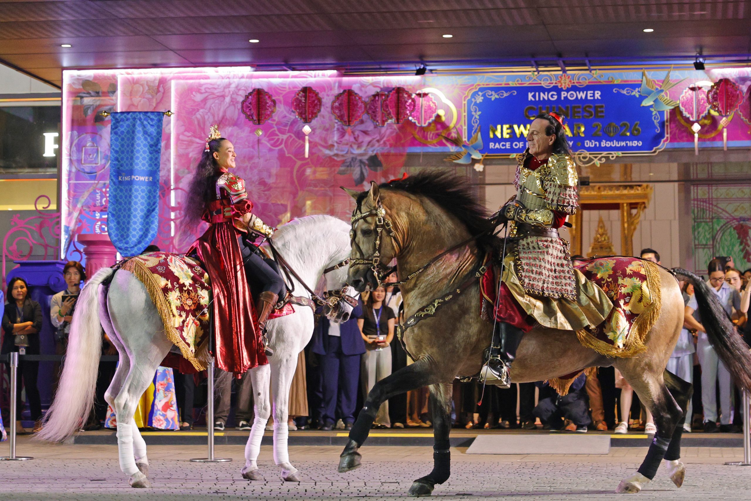เบิกฤกษ์ปฐมบทช่วงเทศกาลตรุษจีน คิง เพาเวอร์ เนรมิตรกิจกรรมเสริมพลัง ดึงดูดความโชคดีภายใต้แคมเปญ “KING POWER CHINESE NEW YEAR 2026 RACE OF LUCK & JOY ปีม้า ช้อปมหาเฮง” ท่ามกลางพิธีเปิดสุดยิ่งใหญ่ พบกับขบวนพาเหรดแห่งโชคลาภ นำโดยนักรบผู้นำพาพลังจากสวรรค์สู่แผ่นดิน เทพธิดานักรบผู้คุ้มครองโชคลาภและความสุข และม้าผู้พิทักษ์ประตูโชคลาภมอบพลังแห่งการเริ่มต้นใหม่ ผนึกกำลังกับเหล่าผู้พิทักษ์จากทิศต่างๆ และ DRAGON LIONS 8 สี ที่นำความโชคดีในทุกๆ ด้าน ร่วมอวยพรมอบความสุขความเป็นสิริมงคล เสริมทัพพลังแห่งความแข็งแกร่งกระตุ้นการเปิดรับความโชคดีกับการแสดงโชว์ขี่ม้า และพบกับไฮไลต์โชว์ “THE POWER OF LUCK POWER OF RACE SHOW” เรียกพลังเสริมความปังไปกับนักแสดงหนุ่มตี๋ สกาย – วงศ์รวี มอบเซอร์ไพร์สให้กับผู้โชคดีในกิจกรรม RIDE INTO LUCK WITH SKY WONGRAVEE ทายใจศิลปินคนโปรดบนม้าหมุนนำโชค เอนจอยโมเมนต์สุดฟิน