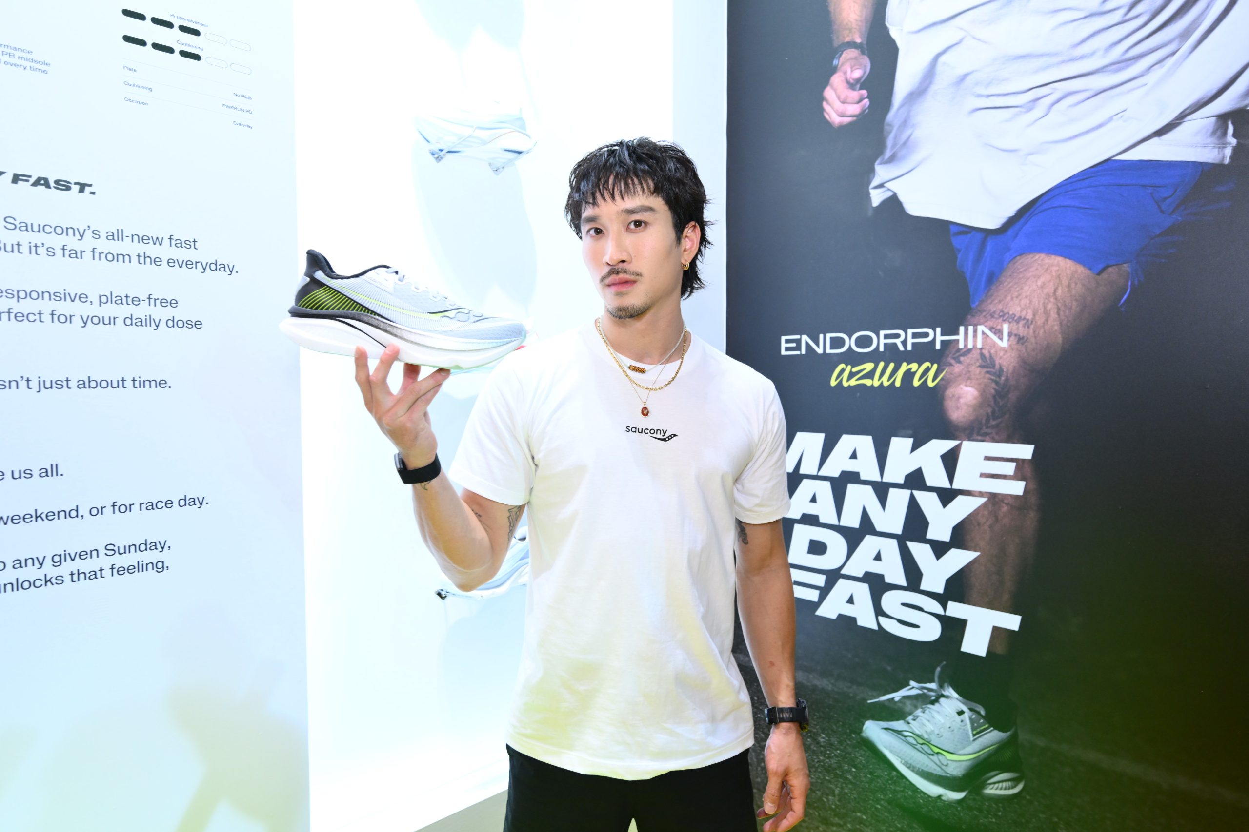 การร่วมงานครั้งนี้ถือเป็นการตอกย้ำภาพลักษณ์ความเท่ที่มาพร้อมวินัย เพราะตัวตนของหนุ่มเฟยนั้นสะท้อน DNA ของแบรนด์ที่เน้นประสิทธิภาพระดับสูงแต่เข้าถึงง่ายได้อย่างลงตัว ซึ่งเจ้าตัวเผยความรู้สึกว่าดีใจมากที่ได้ร่วมงานกับแบรนด์ที่มีประวัติศาสตร์ยาวนาน และมองว่าการวิ่งไม่ใช่แค่เรื่องของความเร็ว แต่คือการออกไปใช้ชีวิตในแบบที่เป็นตัวเอง ซึ่งรองเท้า Saucony ตอบโจทย์ทั้งการซ้อมและการใช้ชีวิตประจำวันได้แบบไร้รอยต่อ