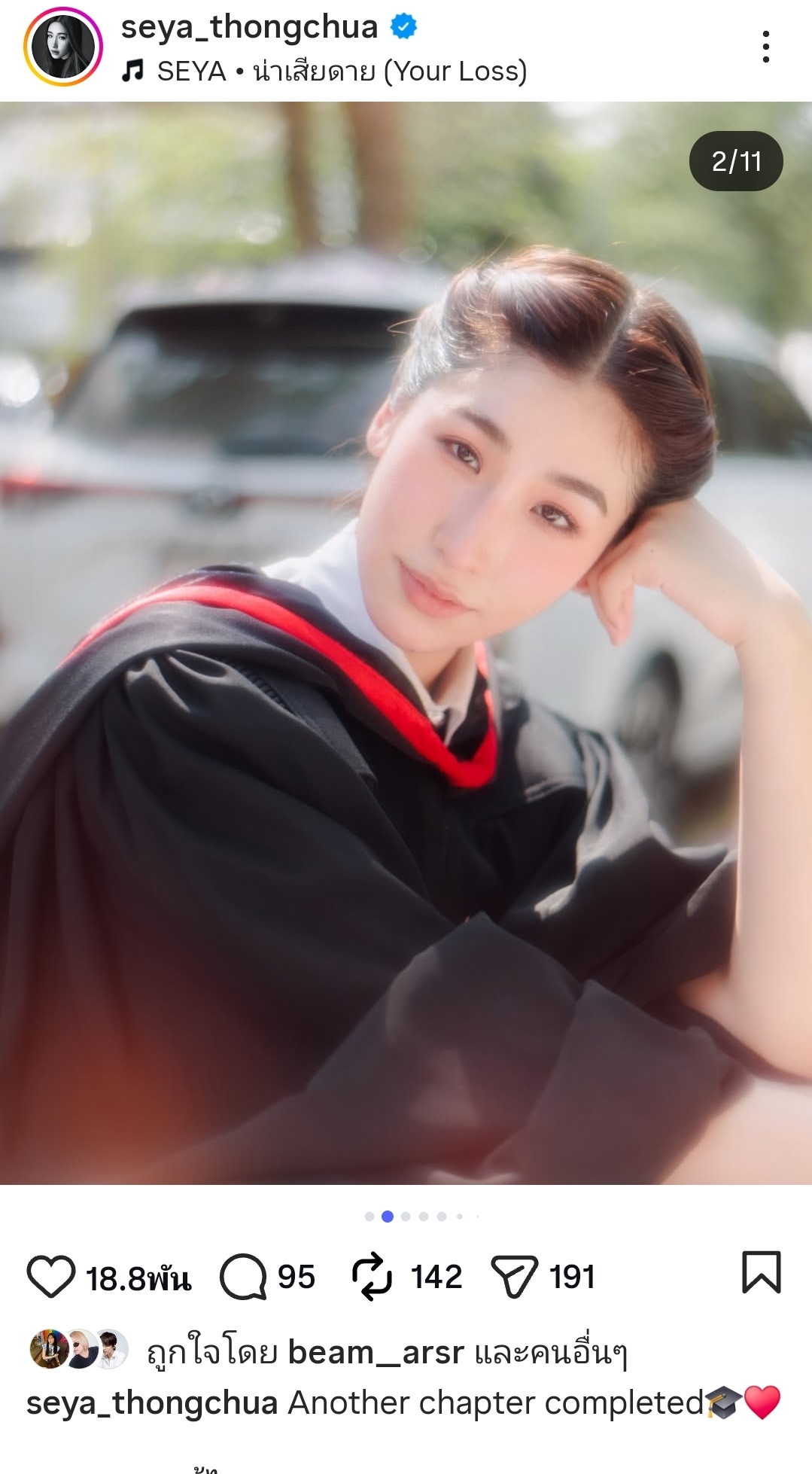 ในภาพเซตนี้เราจะได้เห็นโมเมนต์ความน่ารักของพี่น้อง ทั้งช็อตที่น้องเซย่ากอดคุณแม่ และช็อตที่ถ่ายคู่กับน้องโรเตอร์ เห็นแล้วรู้เลยว่าบ้านนี้เขารักและซัพพอร์ตกันดีขนาดไหน ทางด้านคุณแม่จูนเองก็ได้โพสต์ข้อความสุดซึ้งถึงลูกสาวว่าภูมิใจมาก เพราะเซย่าเคยสัญญาไว้ว่าจะเอาเกียรตินิยมมาฝากแม่ให้ได้ และวันนี้เธอก็ทำสำเร็จแล้ว! “You got it ka!”