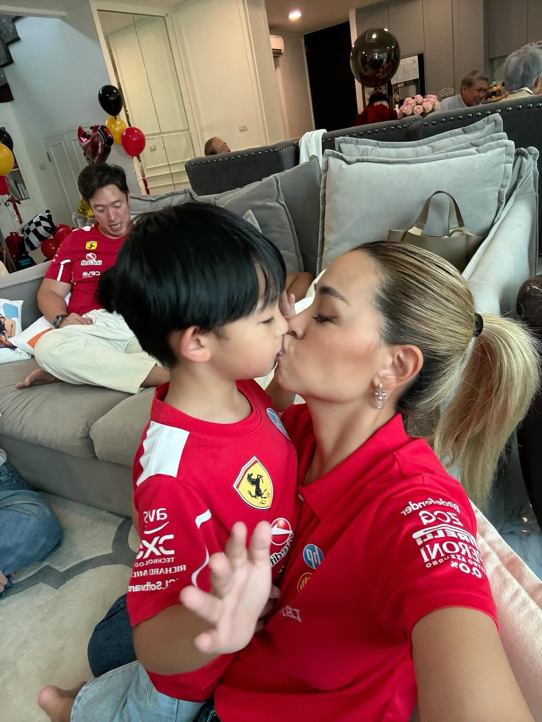 งานนี้คุณแม่วิกกี้เนรมิตปาร์ตี้วันเกิดขนาดกะทัดรัดแต่ความใส่ใจเต็มร้อย เพื่อเอาใจลูกชายโดยเฉพาะ กับธีม #FerrariF1Party ที่ทำเอาอาตี๋น้อย “น้องไทเลอร์” ยิ้มไม่หุบ เพราะทั้งคุณพ่อ คุณแม่ พี่ชาย และเจ้าของวันเกิด ต่างพากันใส่เสื้อทีม Ferrari สีแดงแรงฤทธิ์กันทั้งบ้าน แถมยังมีโมเมนต์สุดคิ้วท์ที่น้องไทเลอร์อวดของขวัญชิ้นโปรดเป็นรถแข่งบังคับรุ่น Drift Go แบบฟินจิกหมอน เห็นแล้วรู้เลยว่าหนุ่มน้อยคนนี้ชอบความเร็วมาตั้งแต่เด็ก!