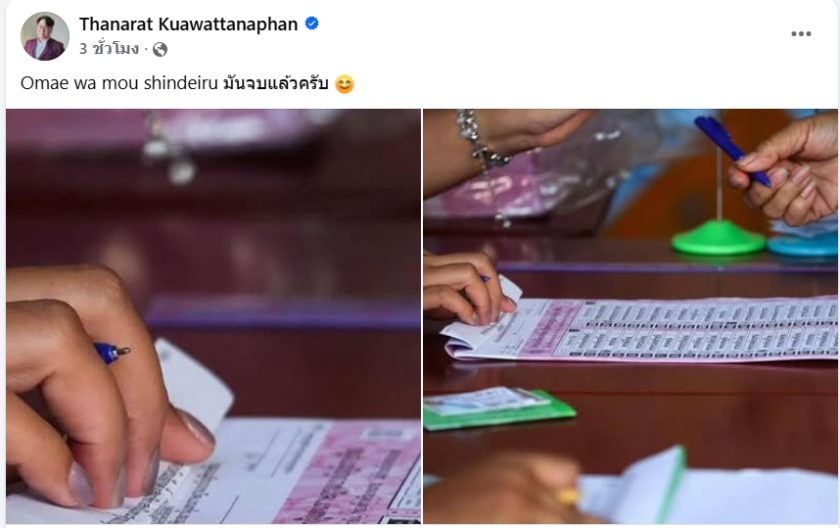 ภาพดังกล่าวถูกเผยแพร่โดย นายธนรัตน์ เกื้อวัฒนาพันธุ์ CEO บริษัทโดมคลาวด์ ผู้เชี่ยวชาญด้านบล็อกเชน ซึ่งเข้าไปสังเกตการณ์การเลือกตั้ง พร้อมระบุข้อความว่า “Omae wa mou shindeiru มันจบแล้วครับ” ทำให้เกิดกระแสวิพากษ์วิจารณ์อย่างกว้างขวาง