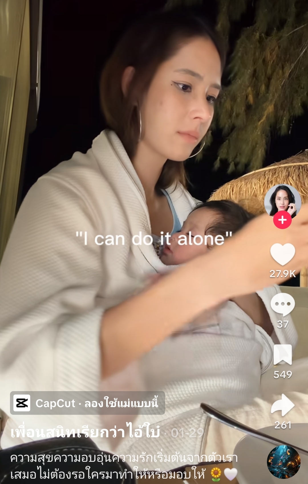 ​ที่พีคไปกว่านั้นคือในฝั่งของสาว ใบหม่อน ที่ทำเอาแฟนคลับใจเสีย เมื่อเธอโพสต์คลิปในติ๊กต็อกขณะอุ้มลูกน้อย พร้อมข้อความกินใจที่ดูเหมือนจะสื่อความหมายอะไรบางอย่างว่า…