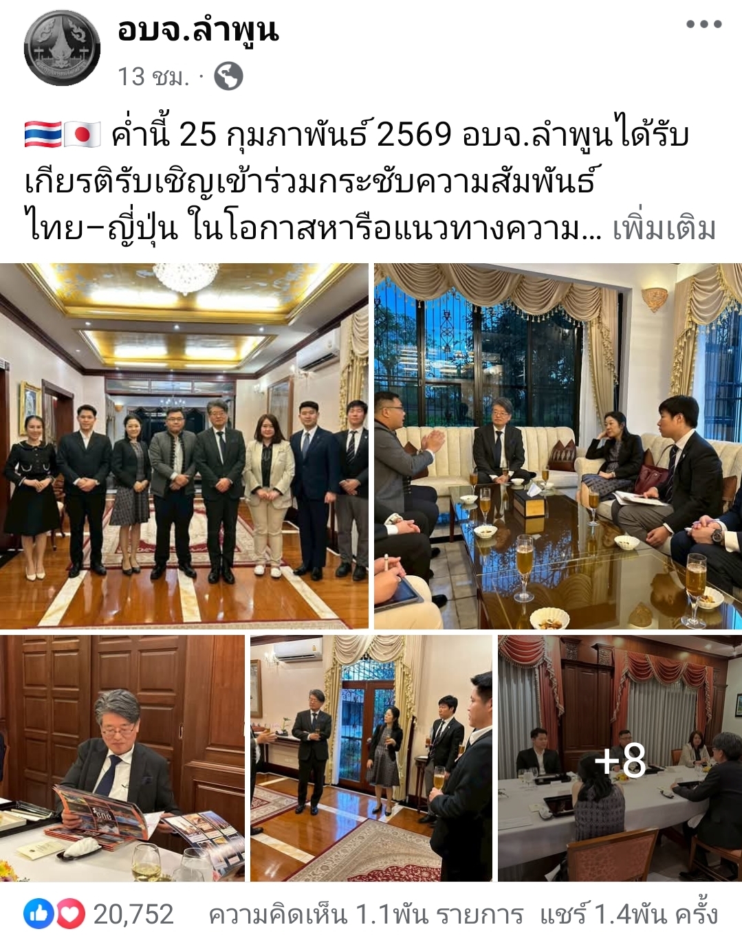 งานนี้ “นายกเฮง-วีระเดช ภู่พิสิฐ” นายกองค์การบริหารส่วนจังหวัดลำพูน แท็กทีมคณะผู้บริหาร อบจ.ลำพูน เดินทางไปร่วมกระชับความสัมพันธ์ไทย–ญี่ปุ่น แบบที่เรียกว่า “มิตรภาพไร้พรมแดน” จริงๆ ค่ะคุณผู้ชม เพราะนอกจากจะได้ร่วมโต๊ะรับประทานอาหารค่ำในบรรยากาศสุดแสนจะ Warm & Cozy แล้ว ยังมีการหารือประเด็นสำคัญๆ ที่จะเปลี่ยนโฉมหน้าเมืองลำพูนให้ก้าวไกลสู่อนาคตอีกด้วย!