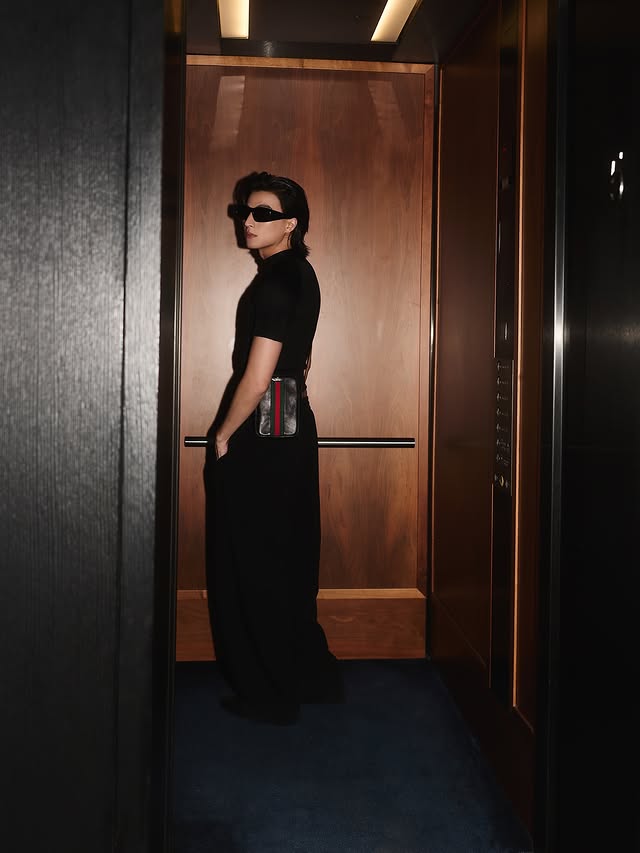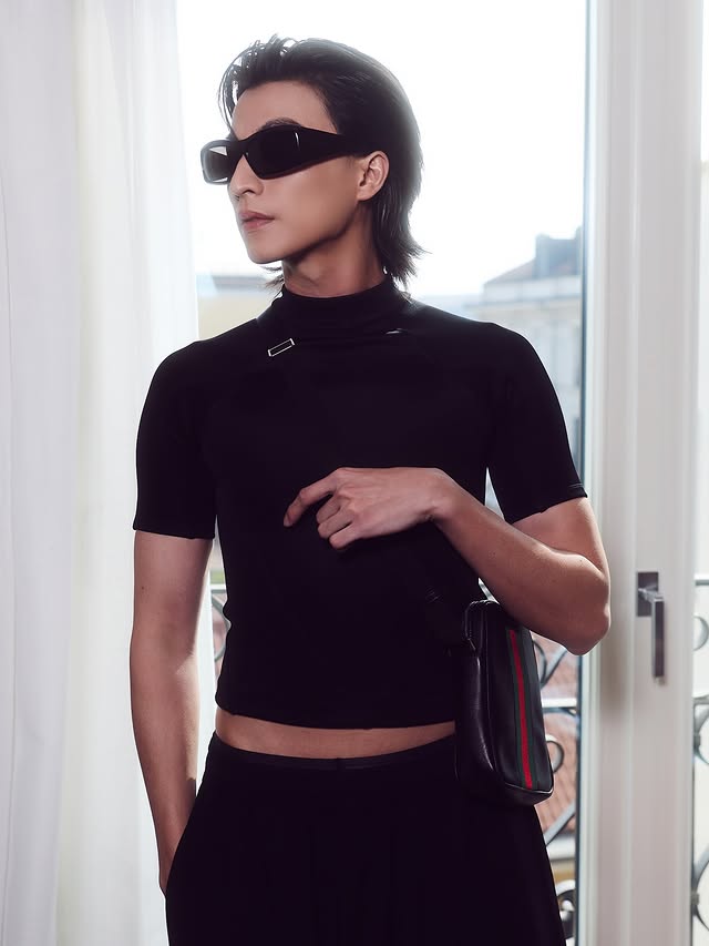 งานนี้เจ้าตัวเลือกโททัลลุคสีดำ เสื้อทรงเข้ารูปดีไซน์มินิมอล แมตช์กางเกงขายาวทรงเนี้ยบ เสริมความเฉียบด้วยแว่นกันแดดดีไซน์ล้ำ และกระเป๋าสะพายใบเล็ก เพิ่มดีเทลให้ลุคดูแฟชั่นจัดจ้านแบบไม่ต้องพยายาม
