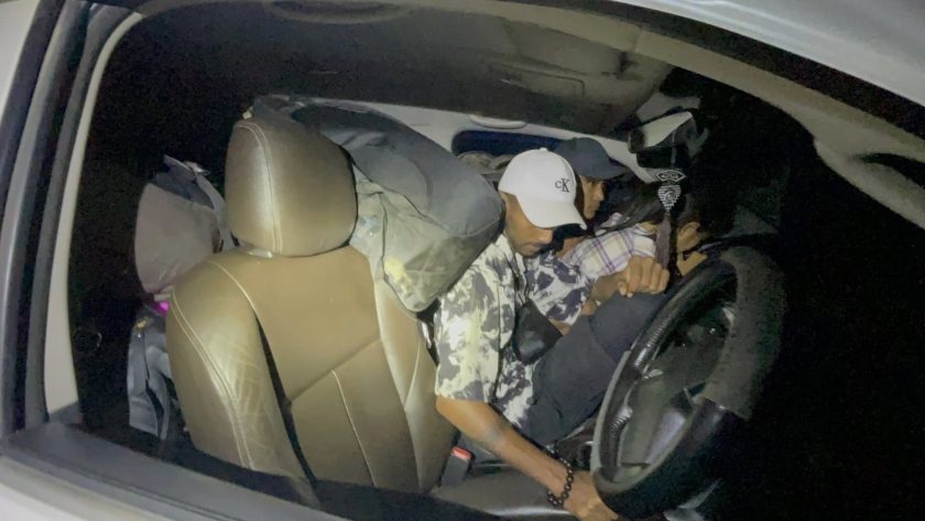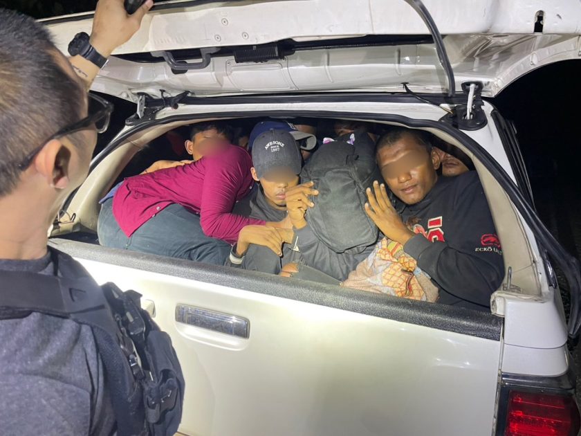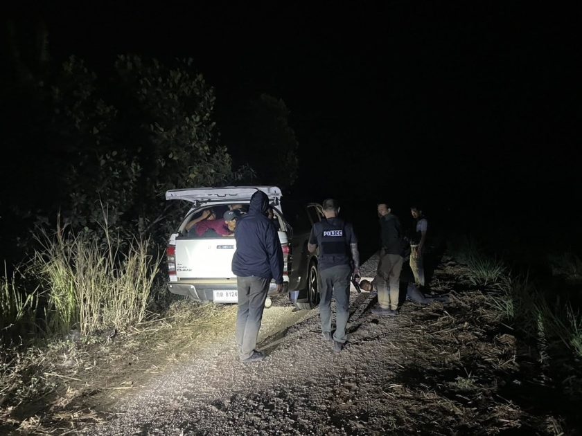 ต่อมาเจ้าหน้าที่พบรถกระบะ 4 ประตู สีขาว ทะเบียนตรงกับที่สายข่าวแจ้ง จึงให้สัญญาณหยุดและเข้าปิดล้อมเพื่อตรวจสอบ เมื่อเปิดประตูรถพบแรงงานต่างด้าวอัดแน่นทั้งในห้องโดยสารและบริเวณท้ายกระบะที่ทำหลังคาทึบ เจ้าหน้าที่จึงสั่งให้ทั้งหมดลงจากรถเพื่อตรวจนับ