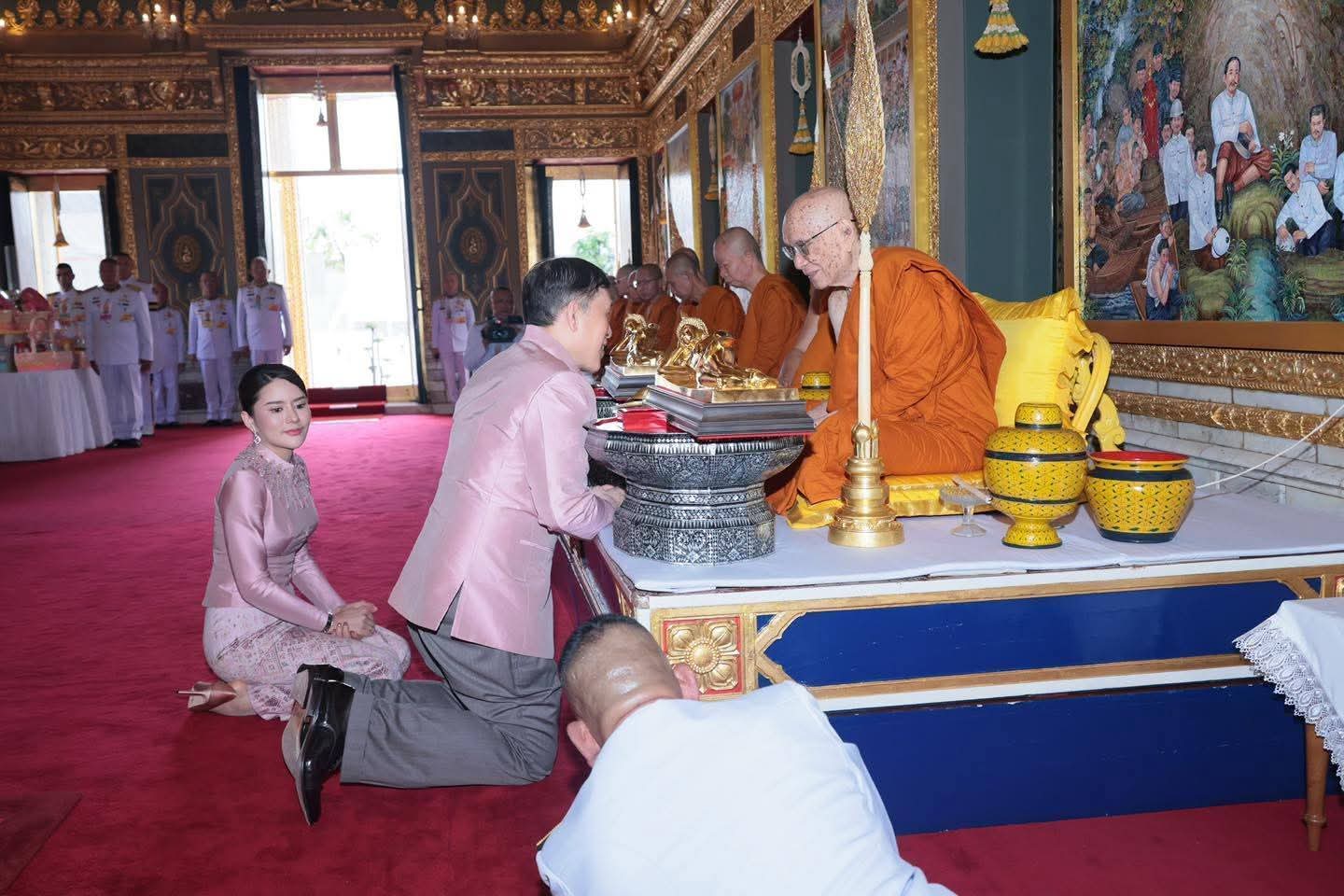 ในวันนี้ ท่านผู้หญิงอรอนงค์ มาในชุดไทยประยุกต์สีชมพูอ่อนที่ดูละมุนสายตาและสุภาพเรียบร้อยมาก ๆ ขณะที่ ในหลวง ทรงฉลองพระองค์ชุดไทยสีเข้าชุดกัน ดูแล้วเป็นภาพที่แสดงถึงความผูกพันและบรรยากาศอันแสนอบอุ่นของการทำบุญในครอบครัวที่ทำให้ผู้ที่พบเห็นต่างก็อมยิ้มไปตาม ๆ กันเลยทีเดียวค่ะ