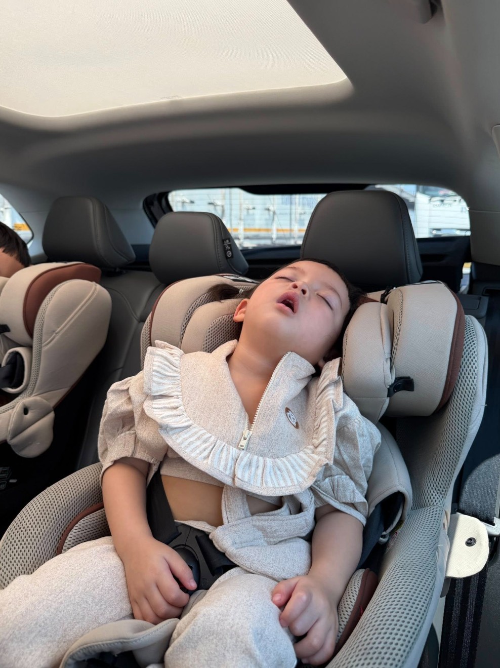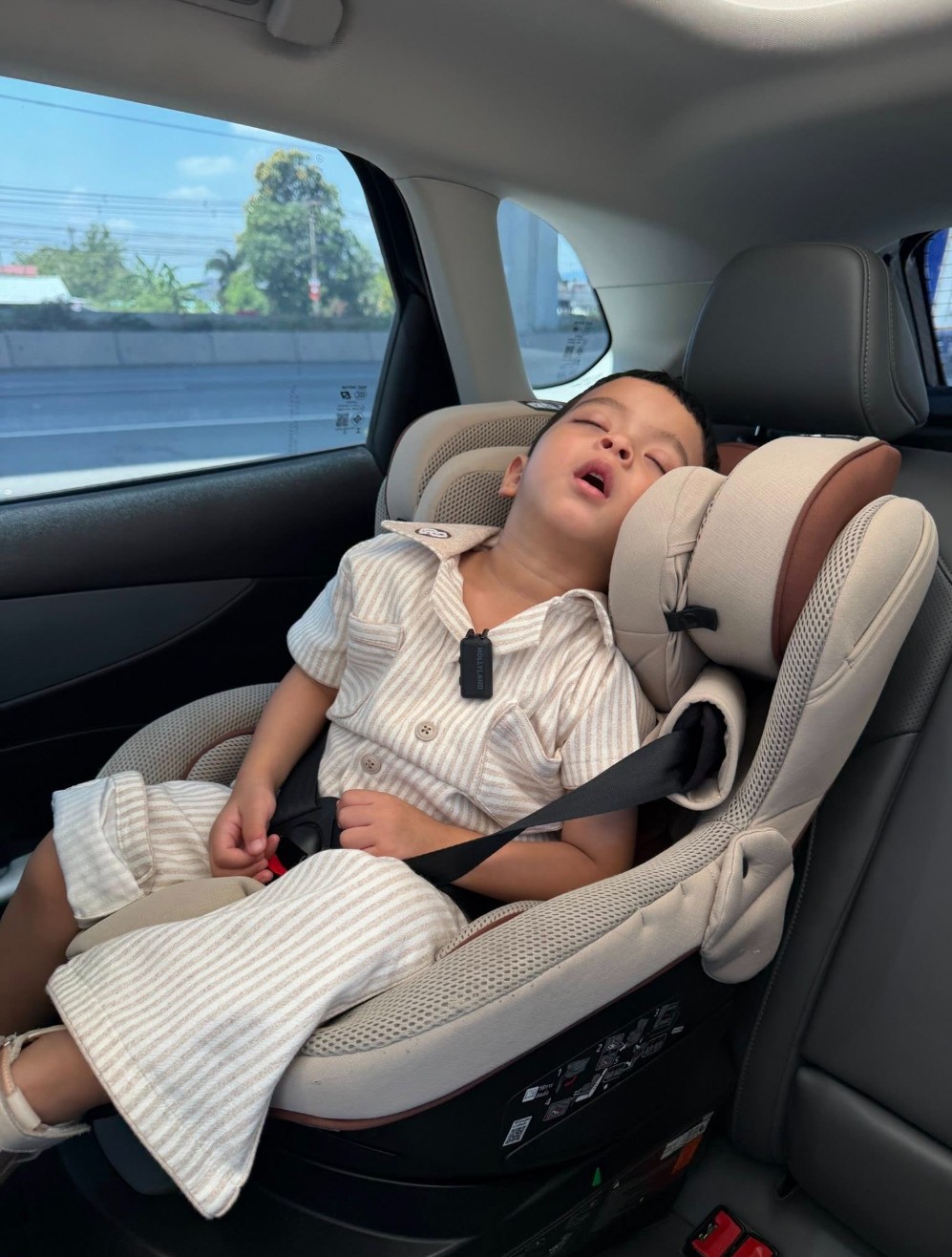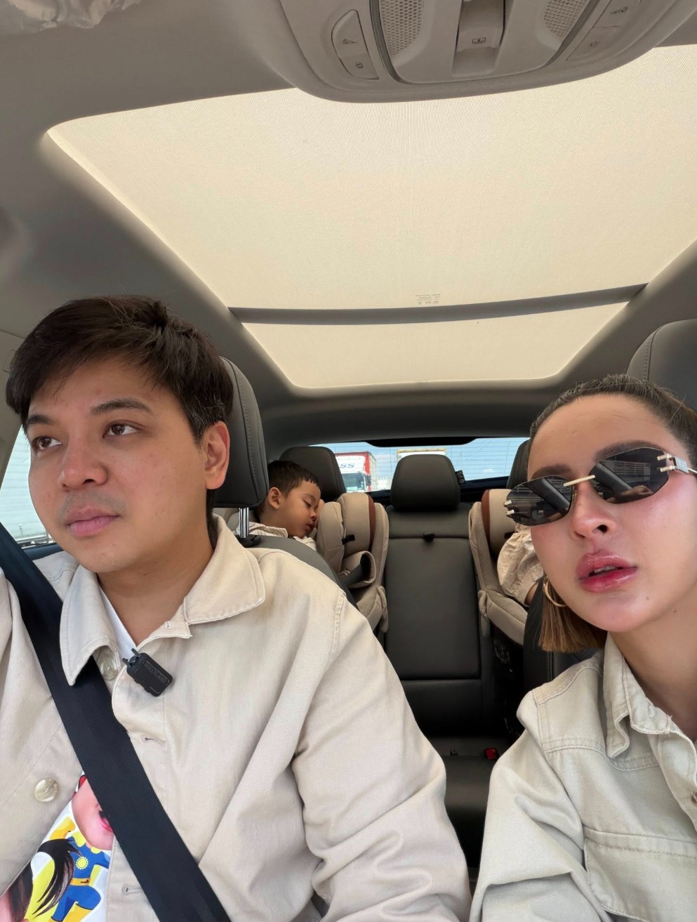 ซึ่งในภาพจะเห็นว่า เจ้าแฝด “โซล” และ “โมโน่” หลับปุ๋ยอยู่ในรถเข็นอย่างสบายใจ เหมือนจะเพลินกับการเดินทางจนเผลอหลับไปเสียแล้ว แต่ที่ทำเอาหลายคนหลุดโฟกัสหนักมากกลับเป็น “น้องซารอส” ที่นอนตาแป๋ว มองไปรอบๆ ด้วยความตื่นเต้นราวกับกำลังสำรวจโลกใบใหม่