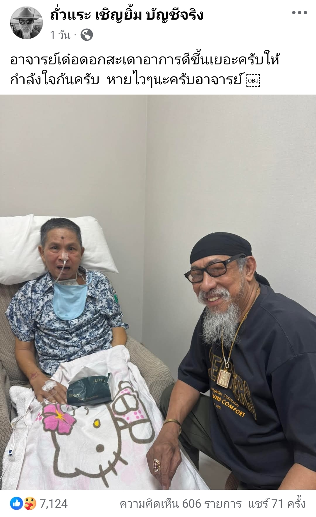 ​”อาจารย์เด๋อ ดอกสะเดา อาการดีขึ้นเยอะครับ ให้กำลังใจกันครับ หายไวๆ นะครับอาจารย์” — ข้อความสุดซึ้งจากถั่วแระ เชิญยิ้ม