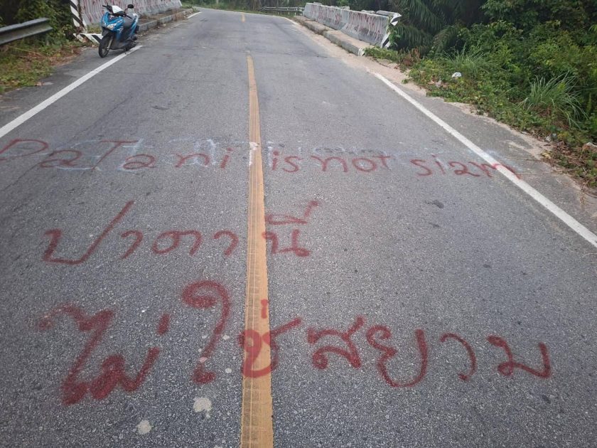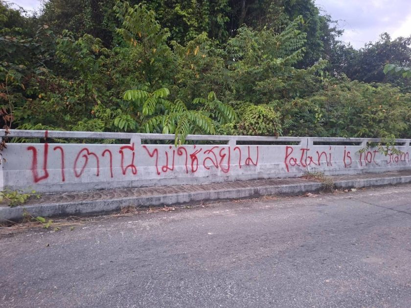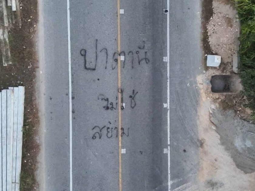 วันนี้ (10 มี.ค. 2569) ผู้สื่อข่าวรายงานว่า เมื่อเวลาประมาณ 07.00 น. เกิดเหตุผู้ก่อความไม่สงบในพื้นที่ 3 จังหวัดชายแดนภาคใต้ก่อเหตุสร้างสถานการณ์ ด้วยการพ่นสีสเปรย์ข้อความภาษาไทยและภาษาอังกฤษว่า “ปาตานีไม่ใช่สยาม Patani is not Siam” บริเวณผิวถนนและสะพานหลายจุด