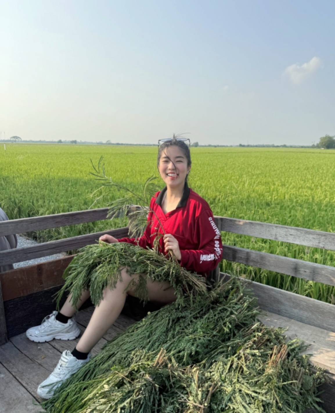 แต่ที่ทำเอาแฟนคลับเอ็นดูหนักมาก ก็คงหนีไม่พ้นลุคฟีลสาวชาวสวน นั่งท้ายกระโปรงรถท่ามกลางทุ่งนาเขียวขจี ถึงแม้จะมาในชุดแขนยาวสีแดงลุยๆ กางเกงขาสั้น และรองเท้าผ้าใบ แต่ความสวยความสดใสกลับพุ่งกระจายเต็มทุ่งนาไปหมด! ลุคนี้พิสูจน์ให้เห็นเลยว่า “คนจะสวย อยู่ที่ไหนก็สวย” จะอยู่ในงานหรูหรืออยู่กลางแดด ก้อยก็ยังดูเปล่งประกายด้วยรอยยิ้มพิมพ์ใจที่เห็นแล้วโลกสดใสขึ้นมาทันที