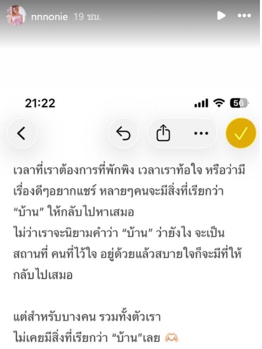 โดย นนนี่ ได้โพสต์ข้อความระบายความรู้สึกส่วนตัวเกี่ยวกับนิยามคำว่า “บ้าน”  ที่อ่านแล้ว บอกเลยว่าสงสารจับใจ