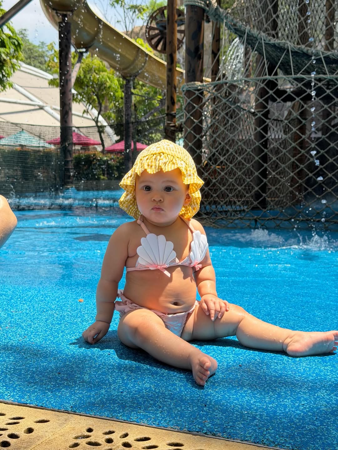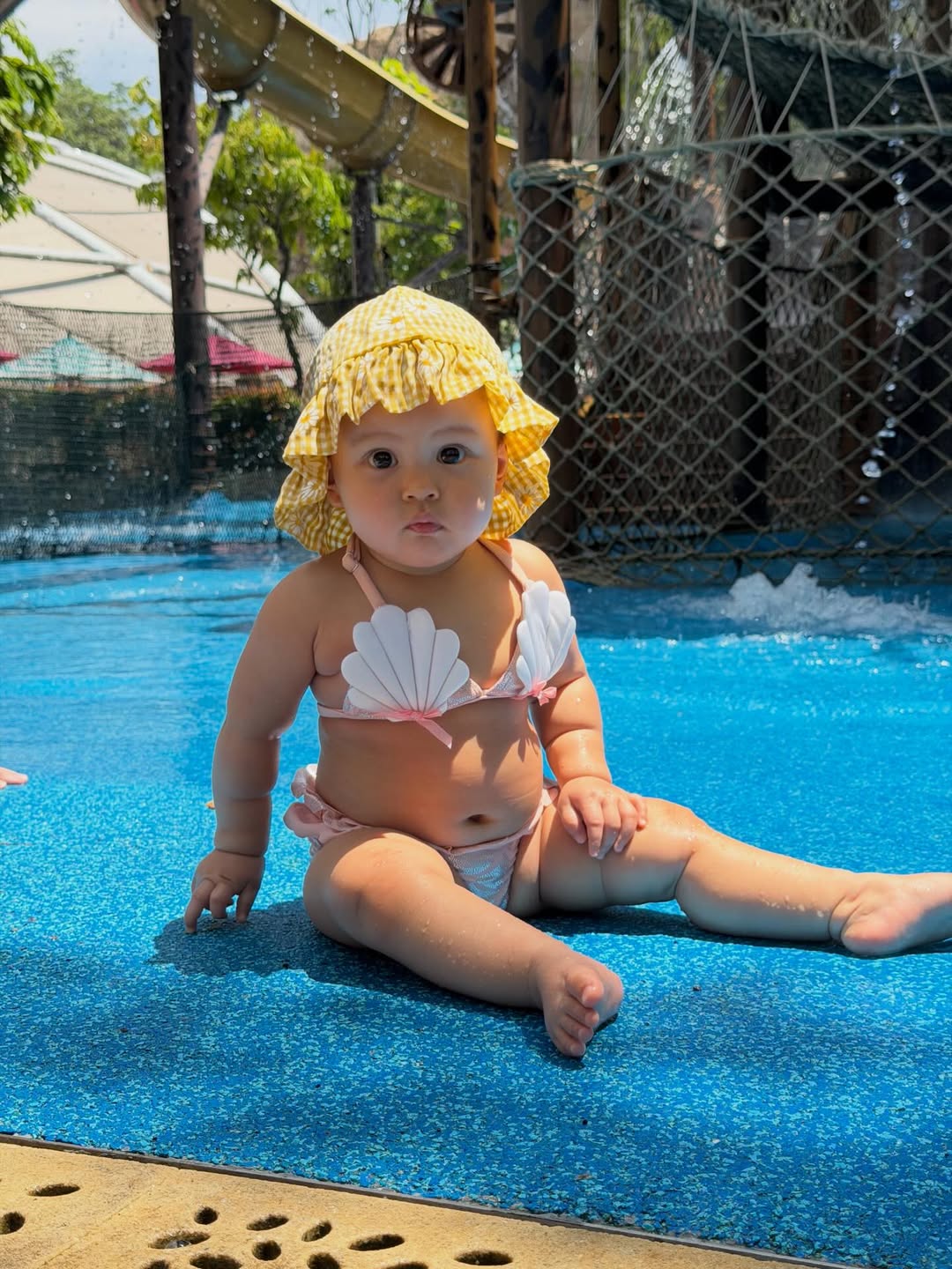 กลายเป็นไวรัลสะเทือนสระน้ำไปเรียบร้อยแล้ว เมื่อคุณแม่สายแฟชั่นสุดแซ่บอย่าง ปุ้มปุ้ย พรรณทิพา และคุณพ่อ กวินท์ ดูวาล แท็กทีมพาลูกสาวคนเล็กอย่าง “น้องวานิลลา สกาย” (Vanilla Sky) ไปเช็คอินอัปเดตความน่ารักรับซัมเมอร์ งานนี้ทำเอาเหล่าพี่ป้าน้าอาชาวโซเชียลถึงกับนั่งไม่ติด เพราะ “น้องวานิลลา” มาในลุคที่ต้องบอกว่าจริตตัวมารดาถ่ายทอดมาสู่ตัวลูกแบบไม่มีหักคะแนน สวมชุดว่ายน้ำทูพีซดีไซน์เปลือกหอยสีชมพูสุดคิวท์ แมตช์กับหมวกบักเก็ตลายตารางสีเหลืองสดใสที่ขับผิวขาวอมชมพูให้ดูโดดเด่นยิ่งขึ้น