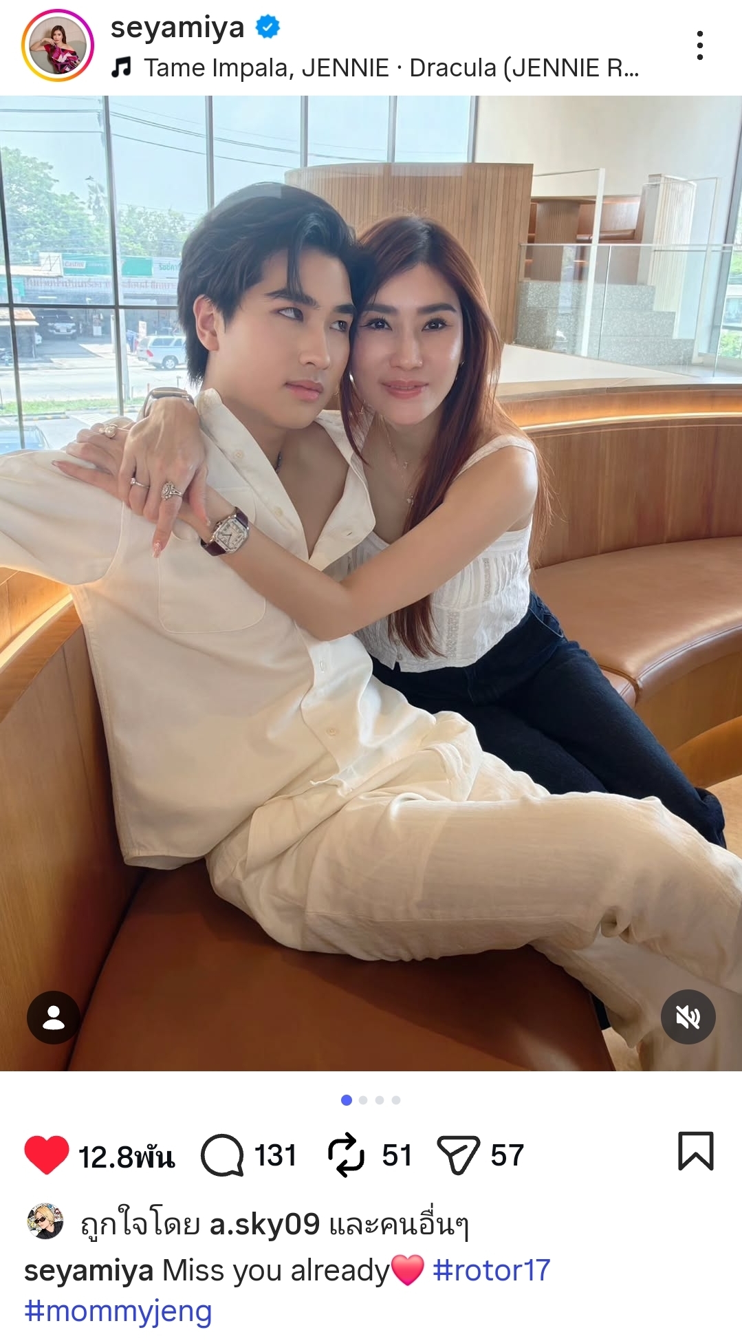​ส่วนคุณแม่เจ็งนั้นไม่ต้องพูดถึง ยังคงความสวยสะพรั่ง หน้าเด็กตลอดกาล ยืนคู่กับลูกชายแล้วดูเหมือนพี่สาวกับน้องชายมากกว่าแม่ลูกเสียอีก! ทั้งคู่โชว์ความสนิทสนม กอดคอ ถ่ายรูปคู่กันอย่างน่ารัก เห็นแล้วสัมผัสได้ถึงความรักความผูกพันของบ้านทองเจือที่แน่นแฟ้นสุดๆ