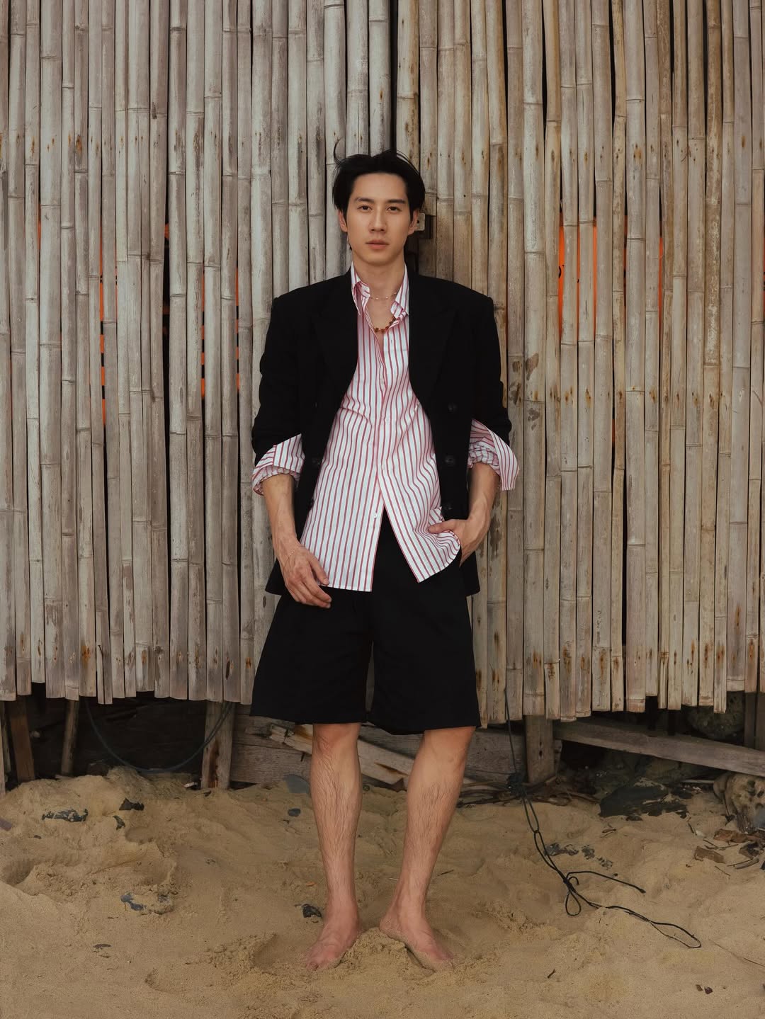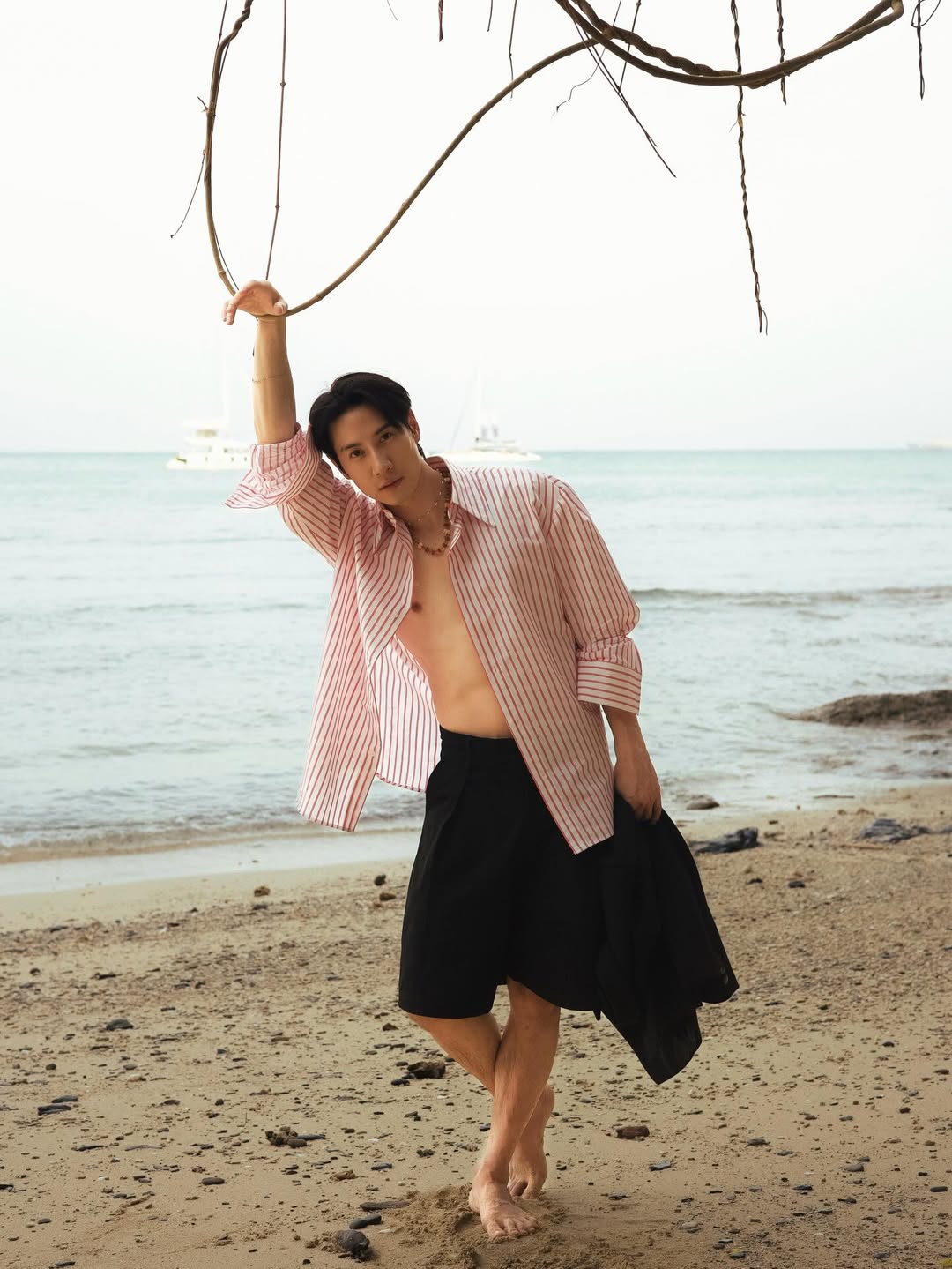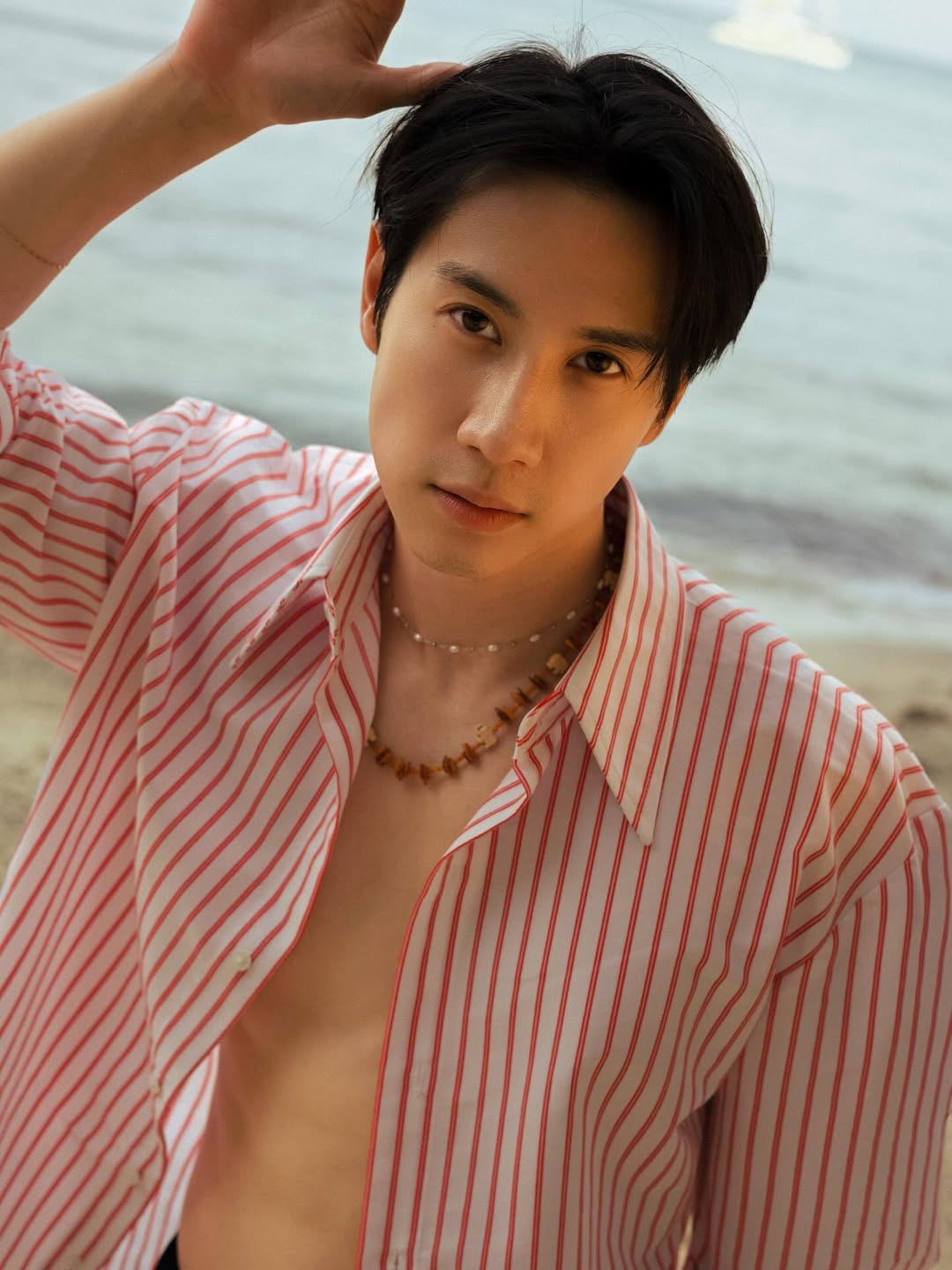 ​งานนี้หนุ่มไบร์ทไม่ได้มาเล่นๆ ปล่อยเซตภาพสุดฮอตในลุคเสื้อเชิ้ตลายทางสีขาวแดงที่ปลดกระดุมออกจนหมด! เผยให้เห็นแผงอกขาวเนียนละเอียดแบบเต็มๆ ตา แข่งกับแสงแดดริมหาดไปเลยสิคะ ยิ่งบวกกับกางเกงขาสั้นสีดำโชว์เรียวขาและท่าโพสต์สุดเท่ ทั้งจับกิ่งไม้เอย จิกกล้องสู้ตายเอย บอกเลยว่าอินเนอร์นายแบบคือที่หนึ่ง!