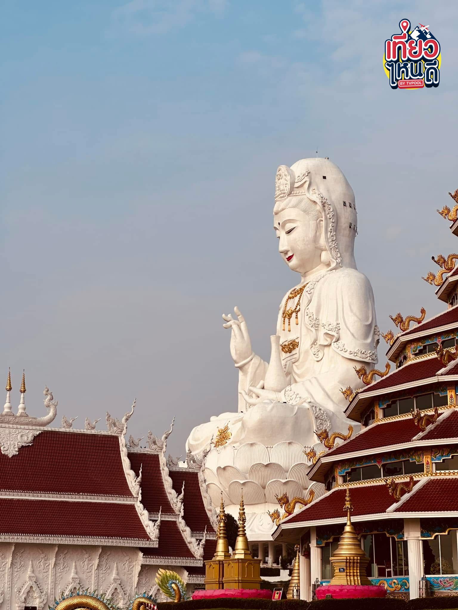 วัดสวยอลังการที่โดดเด่นด้วย “เจ้าแม่กวนอิมองค์ใหญ่สีขาว” มองเห็นได้แต่ไกล 🤍