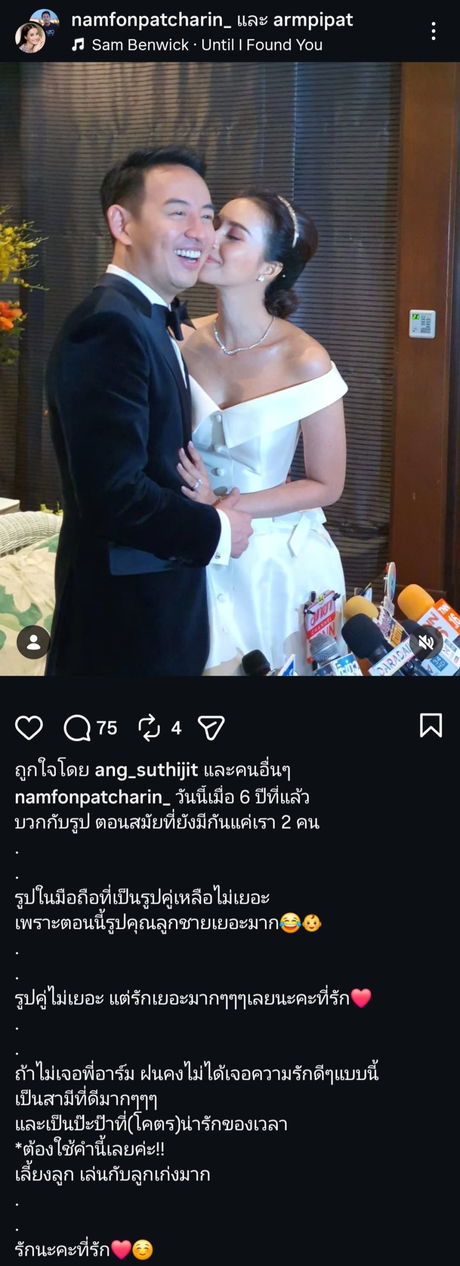 โดยสาวน้ำฝนได้โพสต์รูปคู่ย้อนวันวานตั้งแต่วัยละอ่อน จนถึงภาพวันแต่งงานสุดชื่นมื่น พร้อมแคปชั่นที่อ่านแล้วต้องยิ้มตามว่า “วันนี้เมื่อ 6 ปีที่แล้ว บวกกับรูปตอนสมัยที่ยังมีกันแค่เรา 2 คน” แหม… เห็นแล้วก็อดคิดถึงโมเมนต์ตอนนั้นไม่ได้จริงๆ ค่ะ แต่ที่เด็ดกว่ารูปคือข้อความขอบคุณคุณสามีที่ทำเอาคนอ่านใจฟูไปตามๆ กัน