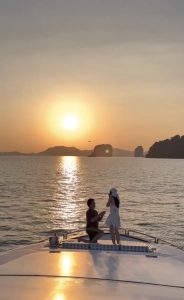 โดยงานนี้ฝ่ายชายได้วางแผนมาอย่างดี พร้อมเผยคลิปโมเมนต์สุดประทับใจขณะหยิบแหวนเพชรเม็ดโตเตรียมไว้ตลอดทริป ก่อนจะอาศัยจังหวะช่วงพระอาทิตย์ตกดินทำเซอร์ไพรส์ขอสาวมินนี่แต่งงาน ซึ่งเจ้าตัวก็ได้ระบุแคปชันสั้นๆ แต่กินใจว่า “I knew you love the sea so… (เพราะรู้ว่าคุณรักทะเล ผมก็เลย…)” ด้านสาวมินนี่เมื่อเจอบิ๊กเซอร์ไพรส์ก็เก็บอาการไม่อยู่ ทั้งตื้นตันและดีใจจนโผเข้าจุ๊บแฟนหนุ่ม ท่ามกลางคำยินดีจากเพื่อนพ้องในวงการและแฟนคลับที่เข้ามาคอมเมนต์กันอย่างล้นหลาม