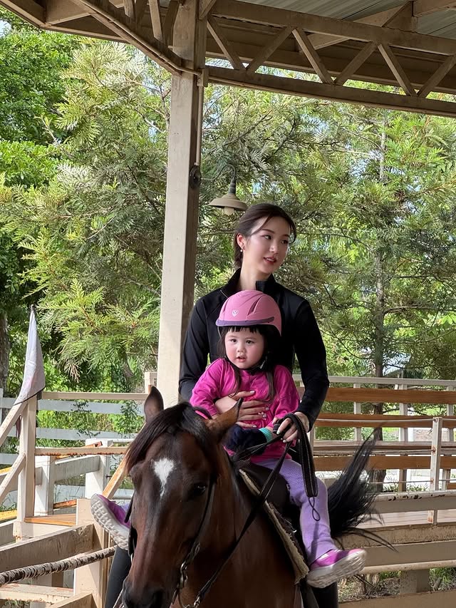 ในภาพจะเห็นว่า “เจ๊เกล” มาในลุคชุดสีชมพูสดใส พร้อมหมวกกันน็อกสุดคิวต์ นั่งบนหลังม้าแบบนิ่งๆ หน้านิ่งแต่แอบมีความงงนิดๆ ยิ่งดูยิ่งเอ็นดูสุดๆ ขณะที่ต้าเหนิงก็คอยประคองและดูแลอย่างอ่อนโยน