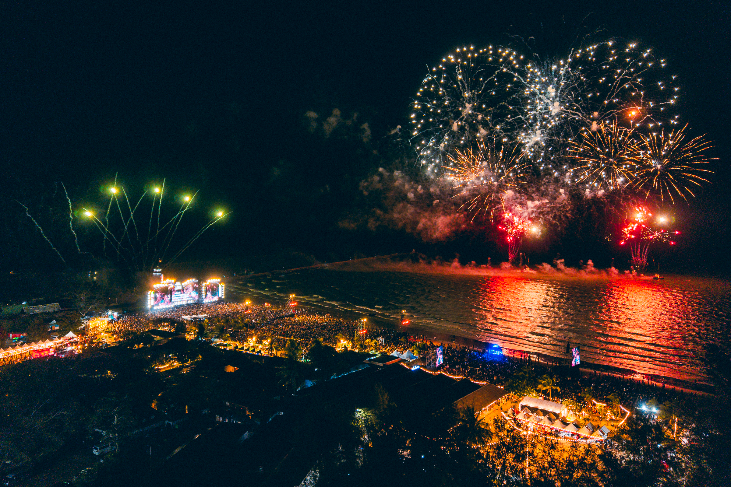 ออกมาชวนทุกคนลุกขึ้นมาปลดปล่อยพลังของตัวเองไปด้วยกันอย่างสุดมันและเดินทางมาถึงช่วงเวลาเซอร์ไพรส์ที่ถูกออกแบบมาเพื่อปีนี้เท่านั้น เมื่อไฟในงานดับลง เพลง EDM ก็ดังขึ้นมาทันทีพร้อมกับเสียงดังสนั่นจาก พลุกลางน้ำ ถูกยิงขึ้นมาจากกลางทะเลเป็นภาพที่ท้องฟ้ามืดสนิทถูกแต่งแต้มด้วยพลุอลังการต่อเนื่องมากกว่า 5 นาที จนกลายเป็นภาพความประทับใจของงานปีนี้ความฟินจากศิลปินยังไม่หมดแค่นี้ เมื่อ Joey Phuwasit ขึ้นมาสร้างความมันกับจังหวะโจ๊ะๆ บนเวที และปิดท้ายความมันกับเจ้าพ่อแร็ปเปอร์ JoeyBoy เปลี่ยนชายหาดให้กลายเป็นแดนซ์ฟลอร์ขนาดใหญ่ส่งทุกคนกลับบ้านด้วยความประทับใจระดับ 10 เต็ม 10!