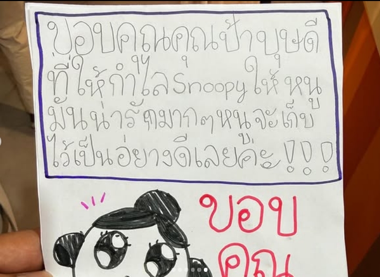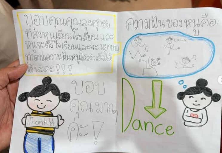 “วันนี้มะลิได้มีโอกาสได้พบกับคุณศุภชัยและคุณบุษดี เจียรวนนท์ หลังจากถามแม่ว่าเมื่อไหร่หนูจะได้เจอ หนูอยากขอบคุณคุณศุภชัยและคุณบุษดี ที่มอบโอกาสทางการศึกษาและเอ็นดูหนูมาตลอดนะคะ วันนี้ตื่นเต้นทั้งแม่ทั้งลูกเลยค่ะ @Suphachai.chearavanont”