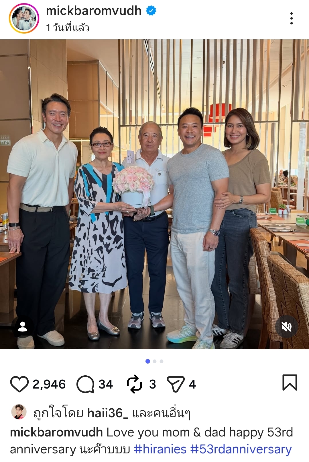 เรียกได้ว่าเป็นภาพที่เห็นแล้วต้องยิ้มตามจนแก้มปริค่ะคุณขา! สำหรับครอบครัวซุปตาร์สุดอบอุ่นของสองพี่น้องงานดี “ชาย ชาตโยดม” และ “มิค บรมวุฒิ” ที่ล่าสุดยกโขยงกันไปร่วมแสดงความยินดีในวันสำคัญที่สุดของหัวใจ นั่นคือวันครบรอบแต่งงานปีที่ 53 ของ “คุณพ่อพลเอกสมชาย” และ “คุณแม่ดวงมาลย์ หิรัณยัษฐิติ” บอกเลยว่างานนี้ความหวานพุ่งปรี๊ดจนมดสำลักน้ำตาลกันไปเลยทีเดียว!