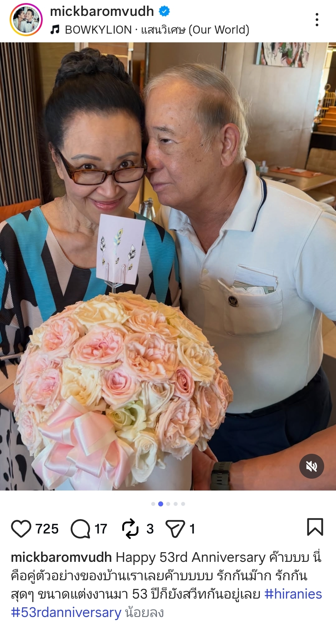 ​”Happy 53rd Anniversary ค๊าบบบ นี่คือคู่ตัวอย่างของบ้านเราเลยค๊าบบบบ รักกันม๊าก รักกันสุด ๆ ขนาดแต่งงานมา 53 ปีก็ยังสวีตกันอยู่เลย”
