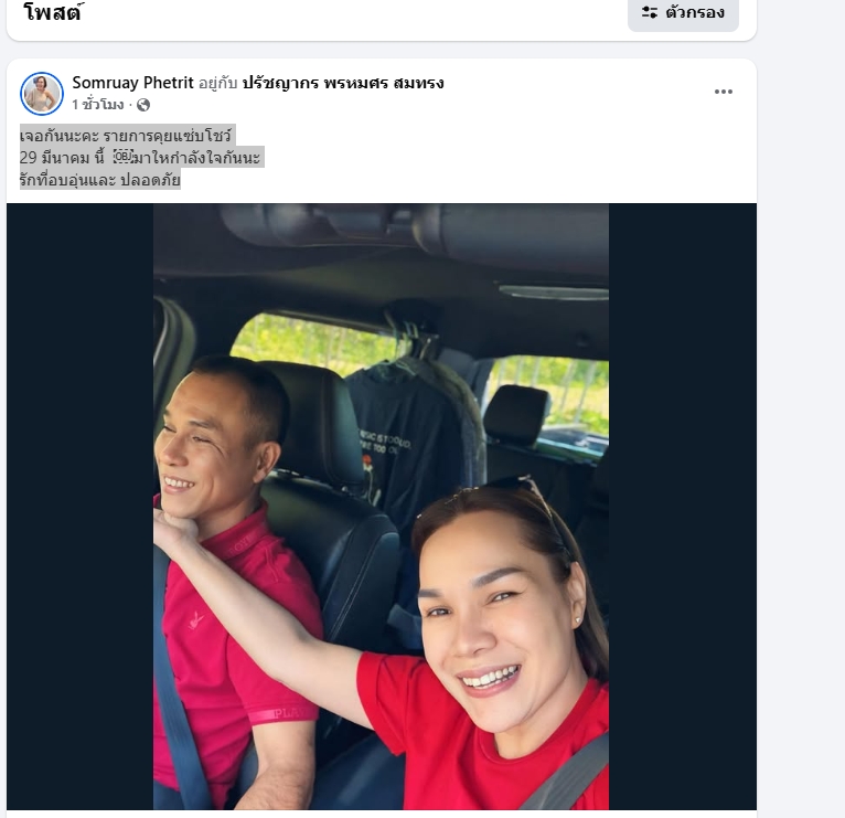 ล่าสุด แม่เกตุ เผยโมเม้นต์ กับหวานใจ กำลังขับรถเข้ากรุงเพทฯ เพื่ออัดรายการดัง ด้วยแคปชั่นว่า..