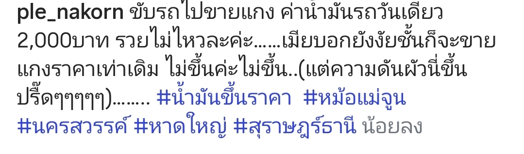 ”ราคาแกงนิ่งสนิท… แต่ราคาน้ำมันและเส้นเลือดในสมองพ่อเปิ้ลเต้นตุบๆ เลยค่ะสิสสสส!”