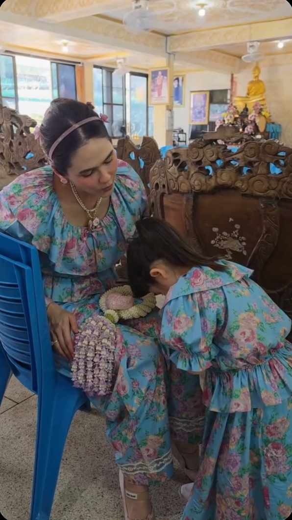 โดยภาพที่ถูกพูดถึงมากที่สุด คงหนีไม่พ้นช็อตที่น้องอบิเกลก้มลงกราบคุณแม่ “ชมพู่ อารยา เอ ฮาร์เก็ต” อย่างนอบน้อม ขณะทั้งคู่มาในชุดลายดอกโทนเดียวกัน ดูเรียบร้อยและละมุนสุดๆ ยิ่งทำให้โมเมนต์นี้ยิ่งดูซึ้งกินใจเข้าไปอีก