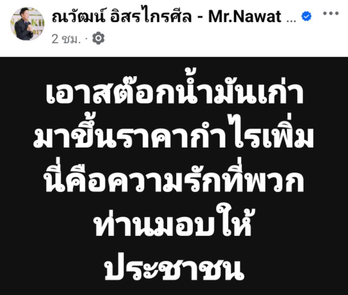 กลายเป็นประเด็นร้อนแรงบนโลกออนไลน์ทันทีเมื่อ ณวัฒน์ อิสระไกรศีล เจ้าพ่อโปรเจกต์และพิธีกรชื่อดัง ได้ออกมาเคลื่อนไหวผ่านเฟซบุ๊กแฟนเพจส่วนตัว วิพากษ์วิจารณ์สถานการณ์ราคาน้ำมันที่กำลังส่งผลกระทบอย่างหนักต่อค่าครองชีพของประชาชนในขณะนี้ โดยข้อความที่โพสต์ระบุถึงการตั้งข้อสังเกตเรื่องการบริหารจัดการต้นทุนน้ำมันที่ดูไม่เป็นธรรม โดยระบุว่ามีการนำเอาน้ำมันในสต็อกเดิมซึ่งซื้อมาในต้นทุนราคาเก่าที่ต่ำกว่า มาปรับขึ้นราคาขายตามกลไกตลาดปัจจุบันเพื่อสร้างกำไรส่วนต่างที่เพิ่มขึ้น