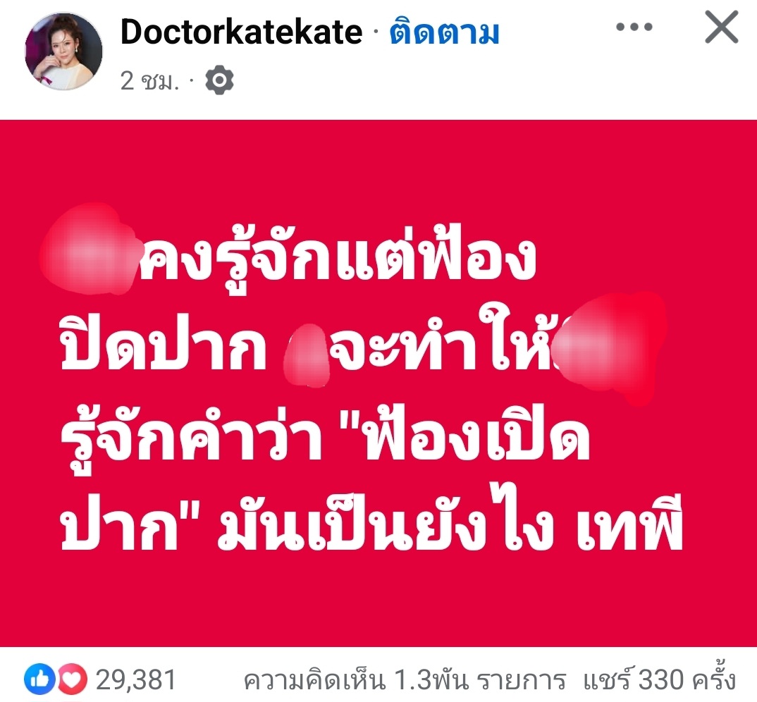 อุ๊ยตายวายกรี๊ด! วงการโซเชียลลุกเป็นไฟยิ่งกว่าลาวาปะทุอีกค่ะคุณขา เมื่อคุณหมอคนดังสายฟาดอย่าง “หมอเคท” หรือ “หมอของขวัญ” ออกมาโพสต์ข้อความผ่านเฟซบุ๊กส่วนตัวชนิดที่ว่าอ่านแล้วต้องเอามือทาบอก! หลังจากมีประเด็นดราม่าโดนรัฐมนตรีชื่อดังฟ้องหมิ่นประมาท งานนี้หมอไม่ยอมเป็นมือน้อยคอยประนมนะคะ ขอสวนกลับแบบจัดหนักตามสไตล์ตัวมัม!
