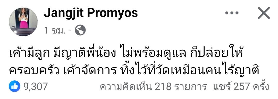 ”เค้ามีลูก มีญาติพี่น้อง ไม่พร้อมดูแล ก็ปล่อยให้ครอบครัว เค้าจัดการ ทิ้งไว้ที่วัดเหมือนคนไร้ญาติ”