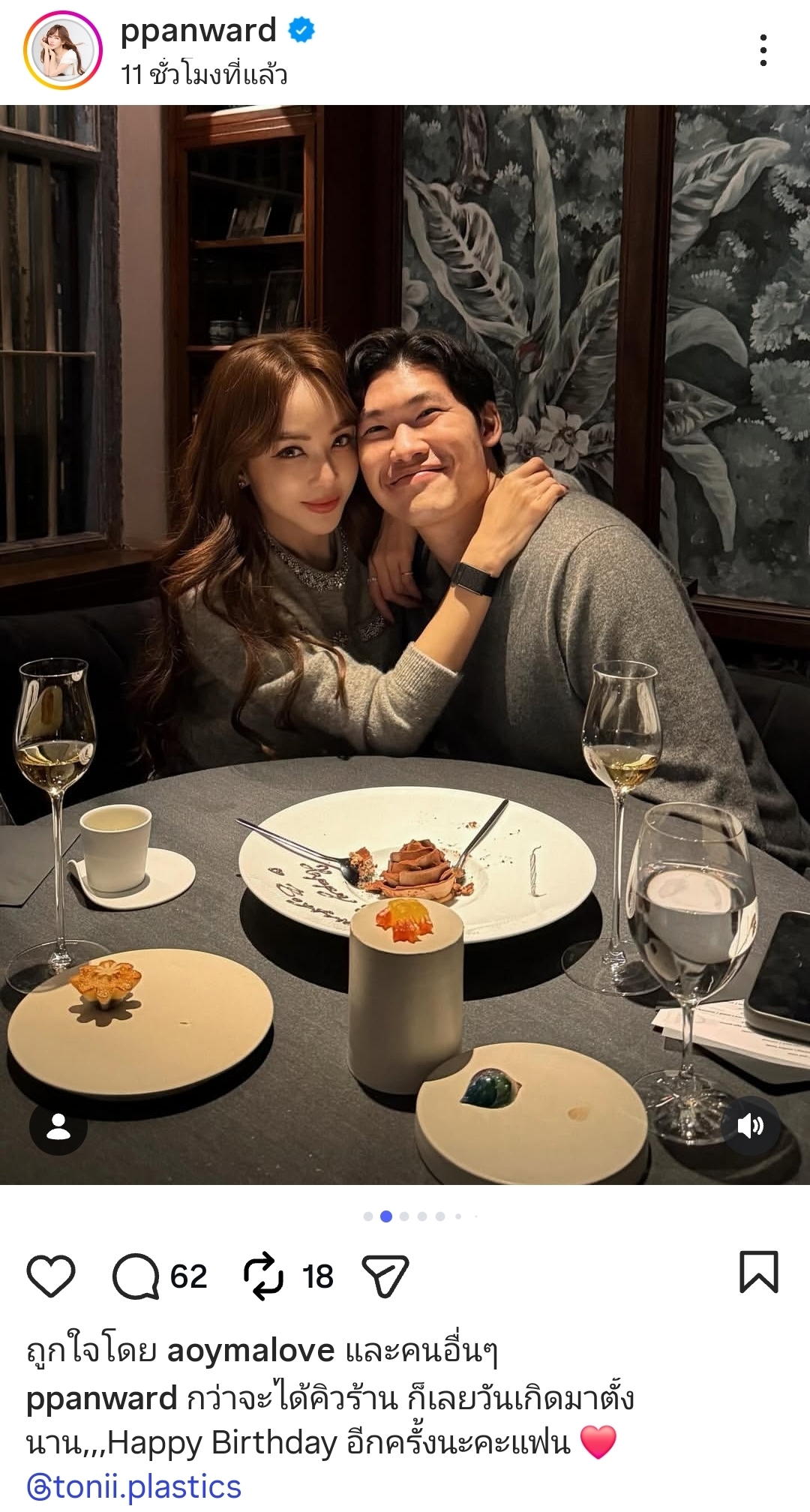 ”กว่าจะได้คิวร้าน ก็เลยวันเกิดมาตั้งนาน,,,Happy Birthday อีกครั้งนะคะแฟน ❤️”