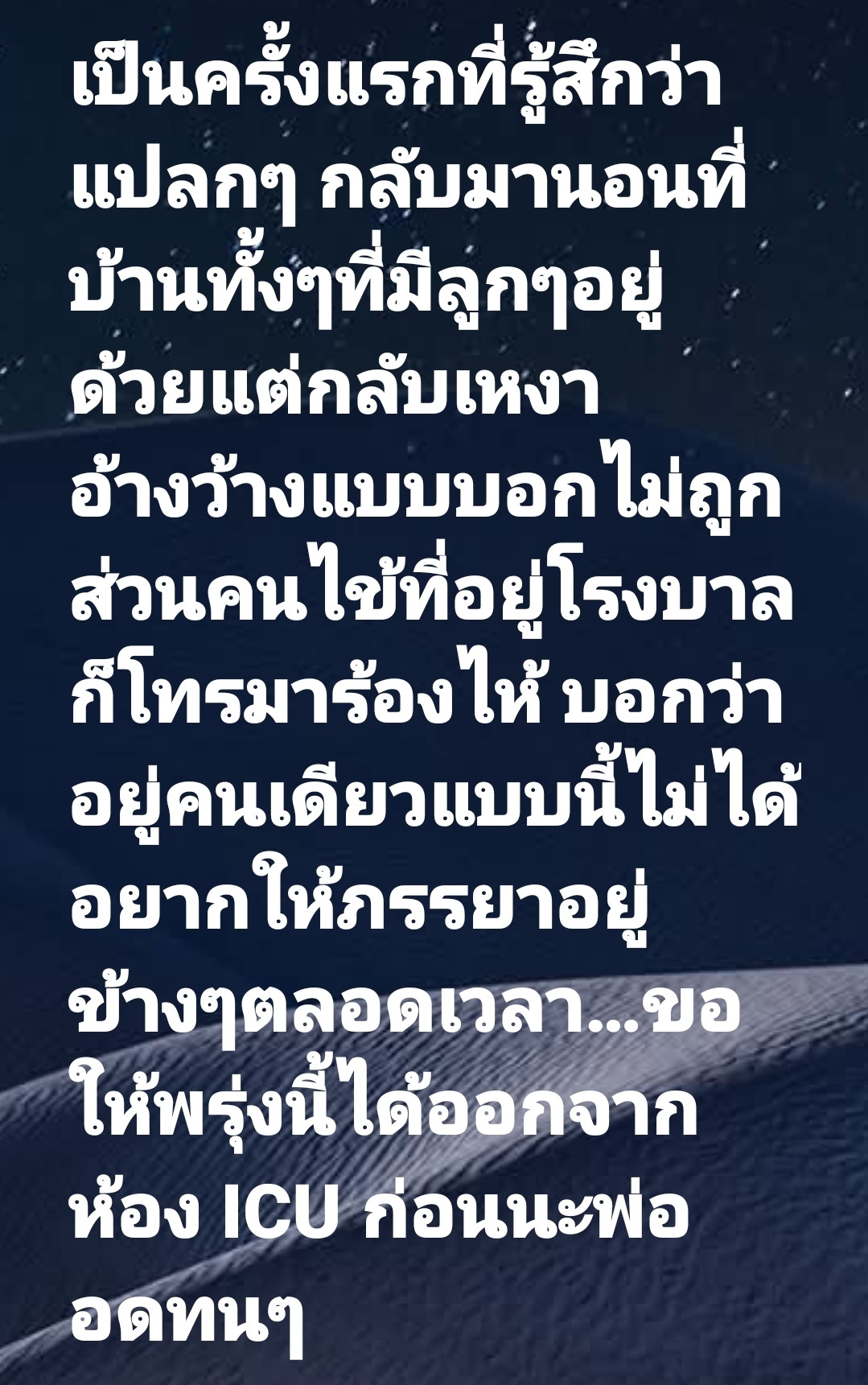 นอกจากอาการป่วยแล้ว สิ่งที่ทำเอาคนอ่านน้ำตาซึมตาม คือความรู้สึกของนางบีที่ต้องกลับมานอนบ้านคนเดียว โดยเจ้าตัวระบายความในใจว่า…