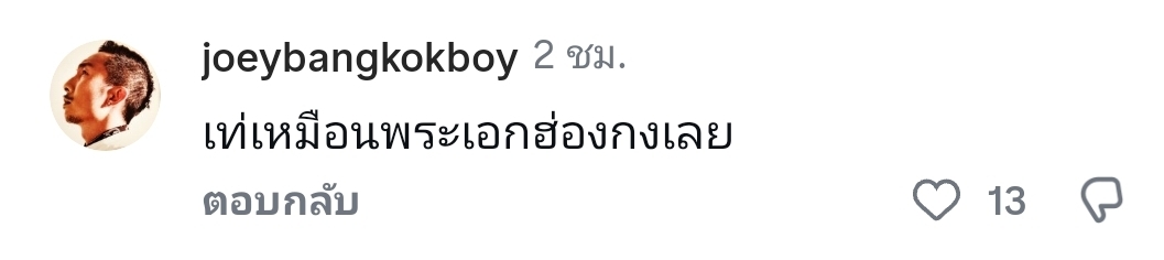 ​”หล่อจนใจสั่น! ลุคส์นี้คือจึ้งมากแม่ แฟนคลับแห่คอมเมนต์เป็นเสียงเดียวกันว่า ‘เท่เหมือนพระเอกฮ่องกงเลย’ งานนี้แม้แต่ตัวพ่ออย่าง พี่โจอี้ บอย ยังต้องโผล่เข้ามาชื่นชมในความเท่ของหลานชาย!”