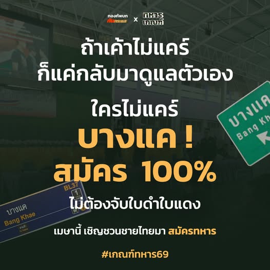 หากมีข้อสงสัยหรือสอบถามข้อมูลเพิ่มเติม ได้ที่หน่วยทหาร หน่วยสัสดีใกล้บ้าน หรือกองการสัสดีหน่วยบัญชาการรักษาดินแดน โทร. 0 2223 3259″