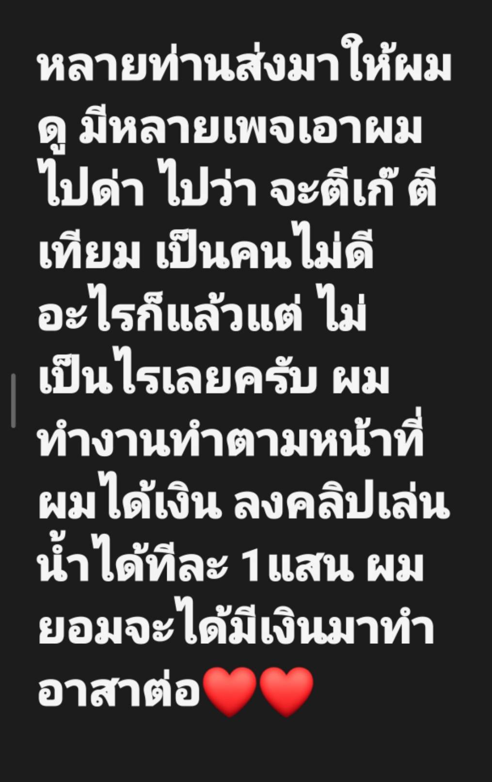 งานนี้ดราม่าตามมาติดๆ ค่ะ เพราะมีเพจดังและชาวเน็ตบางกลุ่มขุดภาพไปวิจารณ์ยับ หาว่าสร้างคอนเทนต์ไม่เหมาะสมบ้างล่ะ ตีเก๊ตีเทียมเป็นคนไม่ดีบ้างล่ะ ทำเอาเจ้าตัวต้องรีบออกมาโพสต์ฟาดกลับนิ่มๆ แต่จุกว่า “หลายท่านส่งมาให้ผมดู มีหลายเพจเอาผมไปด่า… ไม่เป็นไรเลยครับ ผมทำงานทำตามหน้าที่ ผมลงคลิปเล่นน้ำได้เงินทีละ 1 แสน ผมยอม เพื่อจะได้มีเงินมาทำอาสาต่อ”
