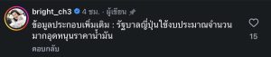 โดยในโพสต์ดังกล่าว “ไบรท์” ได้ถ่ายภาพคู่กับตู้จ่ายน้ำมันในญี่ปุ่น พร้อมระบุข้อความเชิงเปรียบเทียบราคาน้ำมันระหว่างประเทศไทยและญี่ปุ่นว่า แม้ประเทศไทยจะเพิ่งมีข่าวดีเรื่องการปรับลดราคาน้ำมันดีเซลลง 2 บาท ทำให้ราคาอยู่ที่ประมาณลิตรละ 48 บาท แต่เมื่อเทียบกับราคาน้ำมันที่ญี่ปุ่นซึ่งอยู่ที่ลิตรละประมาณ 32 บาท ก็ยังถือว่ามีความแตกต่างกันค่อนข้างมาก