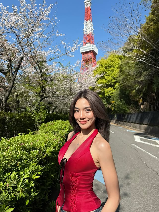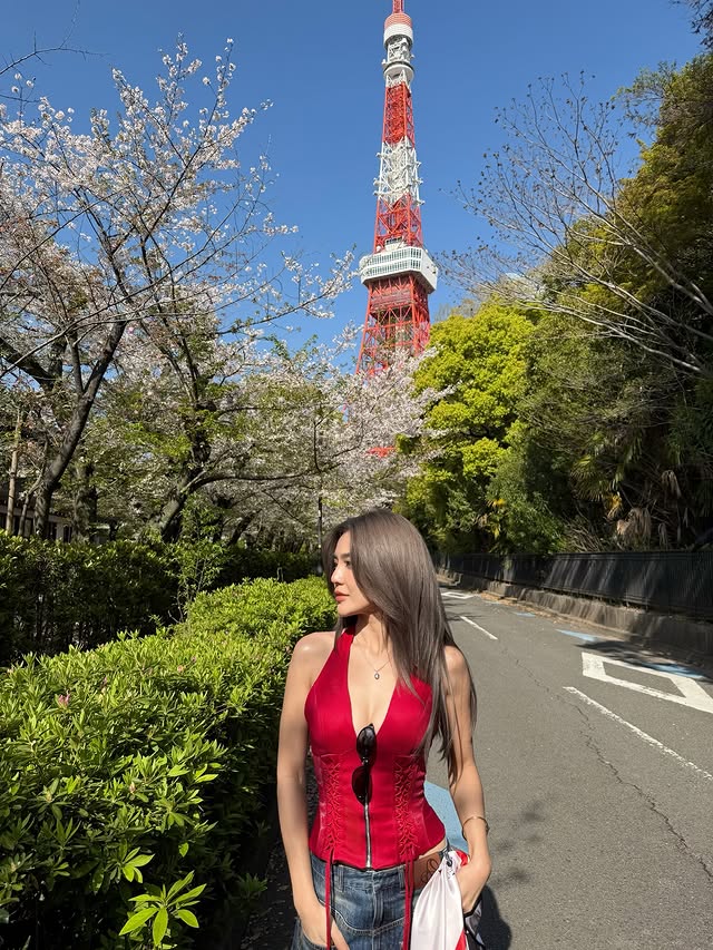 งานนี้สาวปรางมาในลุคสุดชิลแต่แอบแซ่บ ด้วยเสื้อสายเดี่ยวสีแดงสดตัดกับกางเกงยีนส์ โพสต์ท่าท่ามกลางถนนที่รายล้อมไปด้วยต้นซากุระสีขาวอมชมพู บวกกับฉากหลังไอคอนิกอย่างโตเกียวทาวเวอร์ ยิ่งเพิ่มความโรแมนติกและมีเสน่ห์ให้ภาพเซ็ตนี้แบบทวีคูณ