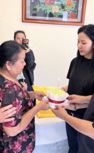 ล่าสุด ณ บ้านพัก จ.อ่างทอง ซึ่งเป็นสถานที่จัดพิธีบำเพ็ญกุศลสวดอภิธรรมศพ แต่ในขณะเดียวกันก็มีโมเมนต์ที่บีบหัวใจคนทั้งงาน เมื่อจ๊ะตัดสินใจยกเค้กออกมาเซอร์ไพรส์วันเกิดคุณแม่ท่ามกลางบรรยากาศงานศพของคุณพ่อ พร้อมระบุข้อความว่า