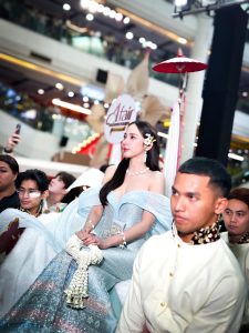 ไฮไลต์สำคัญที่ทำให้ผู้คนในงานต้องหยุดชะงัก คือช่วงที่สาวอั้มนั่งบนเสลี่ยงคานหาม แห่ผ่านกลางตลาดท่ามกลาง แฟนคลับที่มารอชมกันล้นหลาม