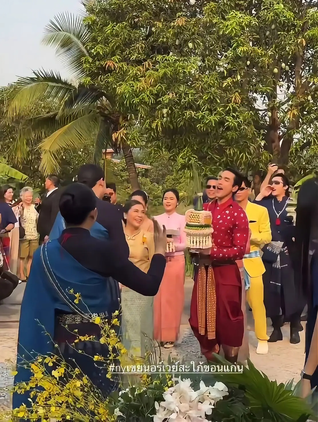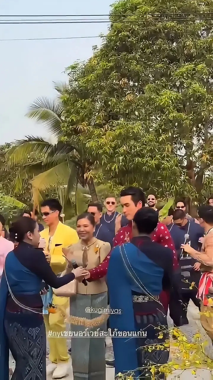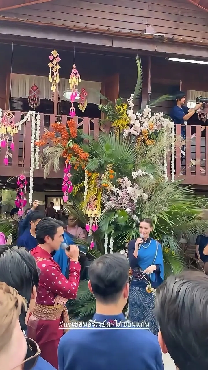 บอกเลยว่างานนี้ทางเราตาค้างมาก เพราะพ่อแบร์รี่หล่อโฮกในชุดไทยสีแดงก่ำพาดบ่าด้วยผ้าแพรวา นำขบวนรำหน้านาคเอ้ย! รำหน้าขันหมากมาแบบม่วนชื่นโฮแซวสุดๆ ท่ามกลางบรรยากาศเรือนไทยที่ตกแต่งได้จึ้งจิตจึ้งใจ กลิ่นอายอีสานบ้านเฮาผสมผสานความเป็นอินเตอร์ได้แบบลงตัวสุดๆ