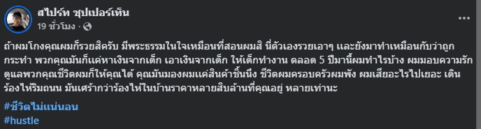 เรื่องร้อนขึ้นมาทันที เมื่อ สไปร์ท ซุปเปอร์เท็น นักร้องแรปเปอร์ชื่อดัง ได้ออกมาโพสต์แรงถึงการถูกกล่าวหาว่าโกง และถูกเอาเปรียบมาตลอด 5 ปี จนชีวิตครอบครัวพัง โดยระบุว่า